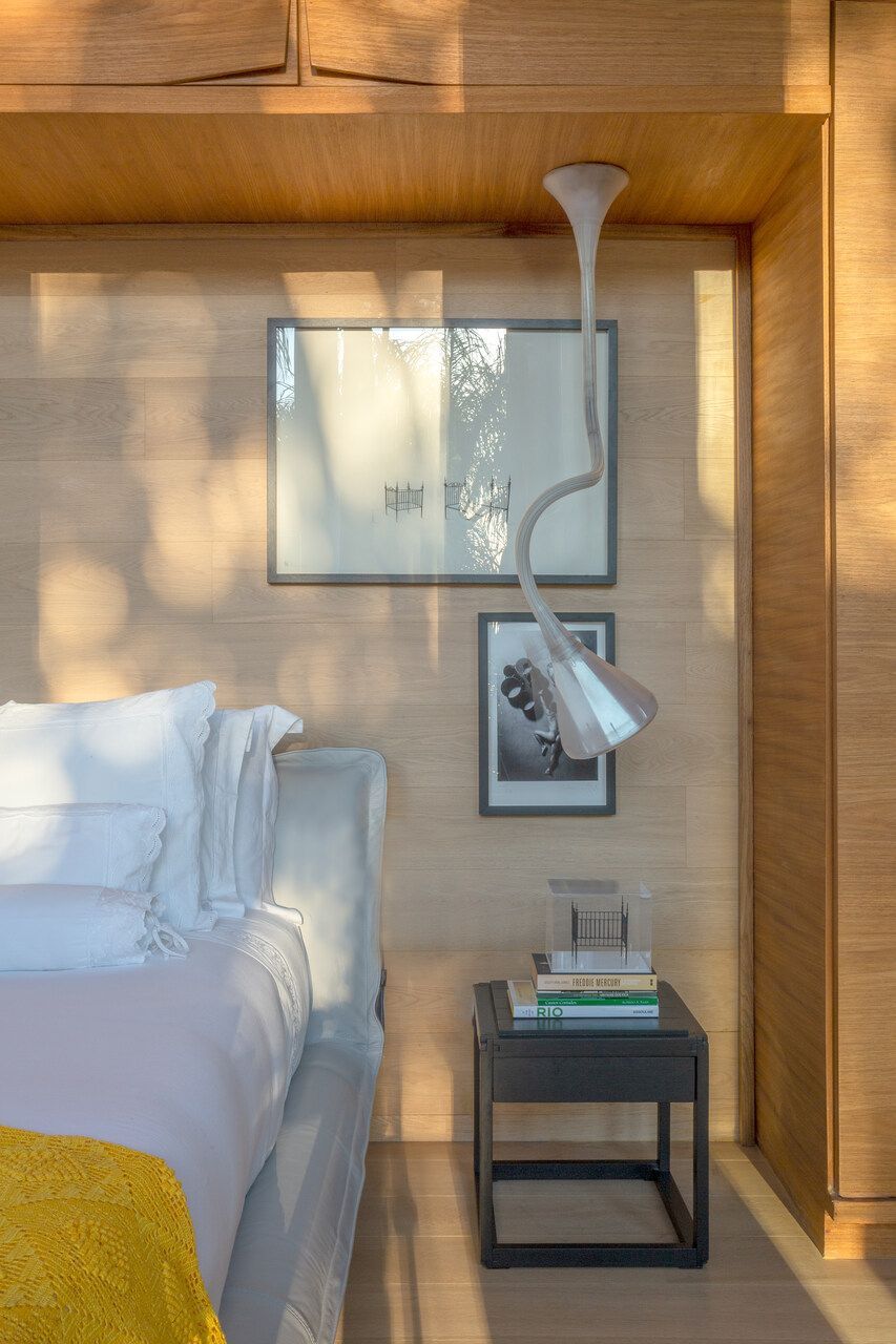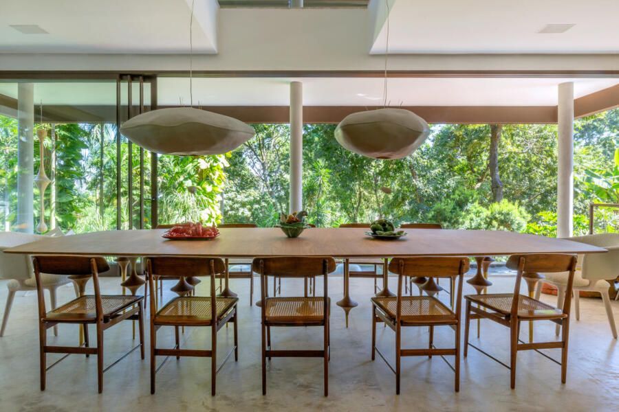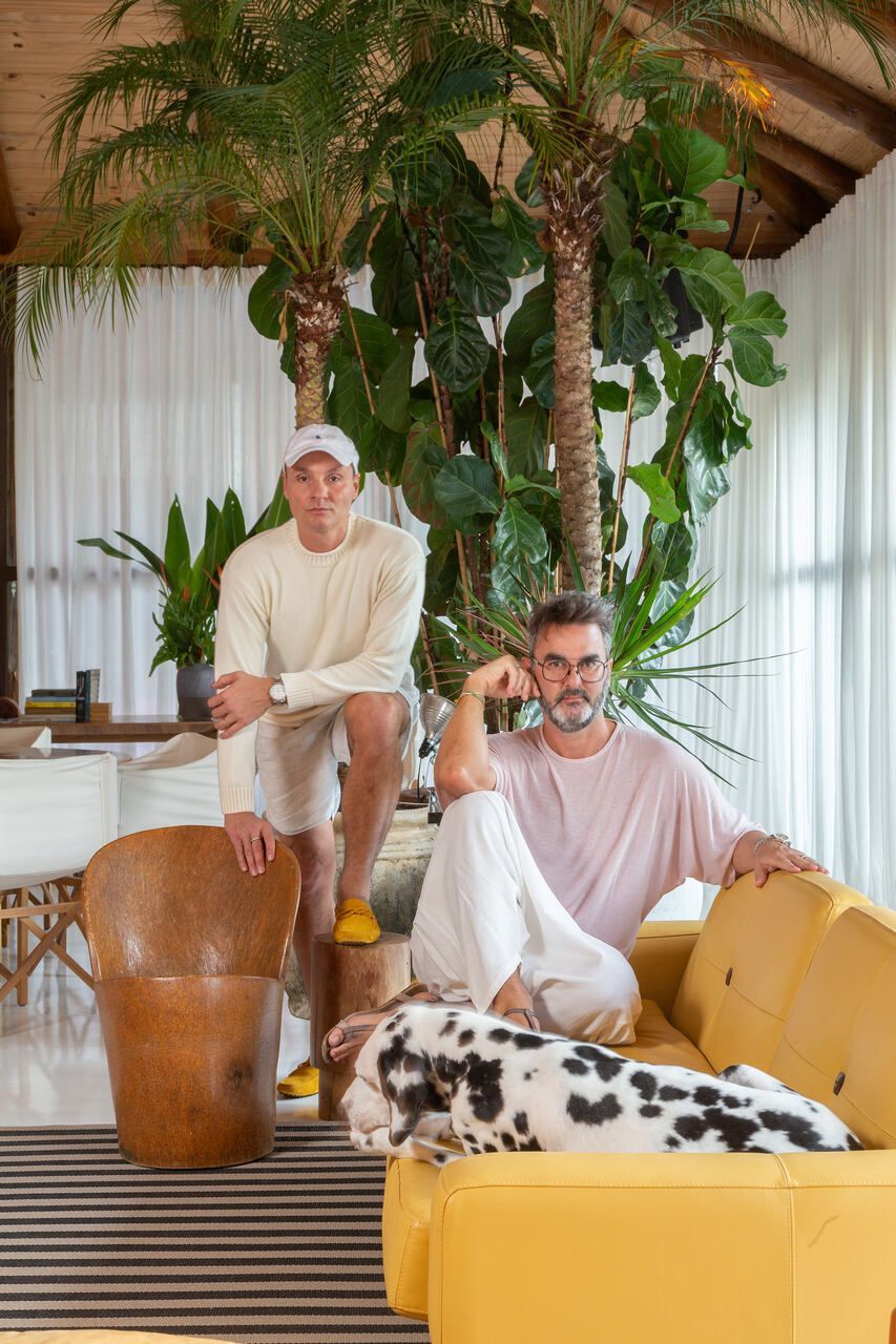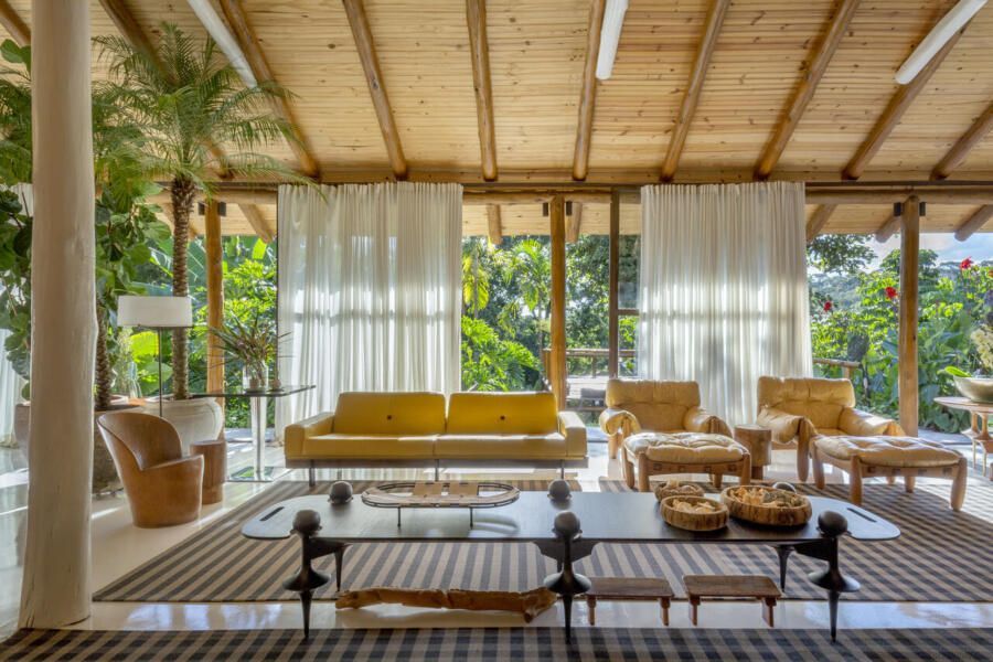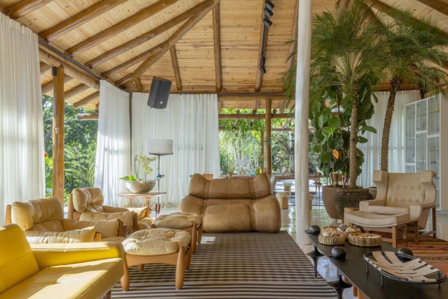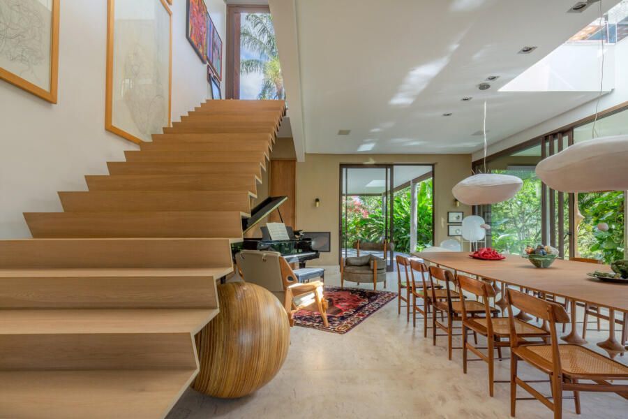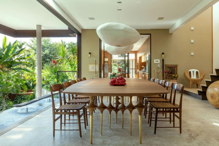 O interior é uma extensão do olhar curatorial do arquiteto. O mobiliário brasileiro divide espaço com obras de artistas de diferentes partes do mundo, compondo um ambiente que reflete sua sensibilidade estética e seu amor por tudo que é autêntico e cheio de história.