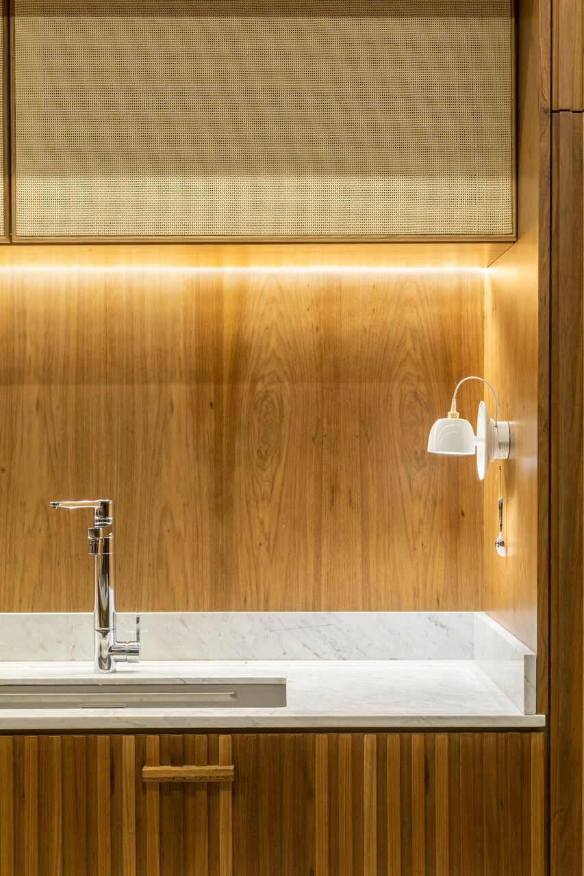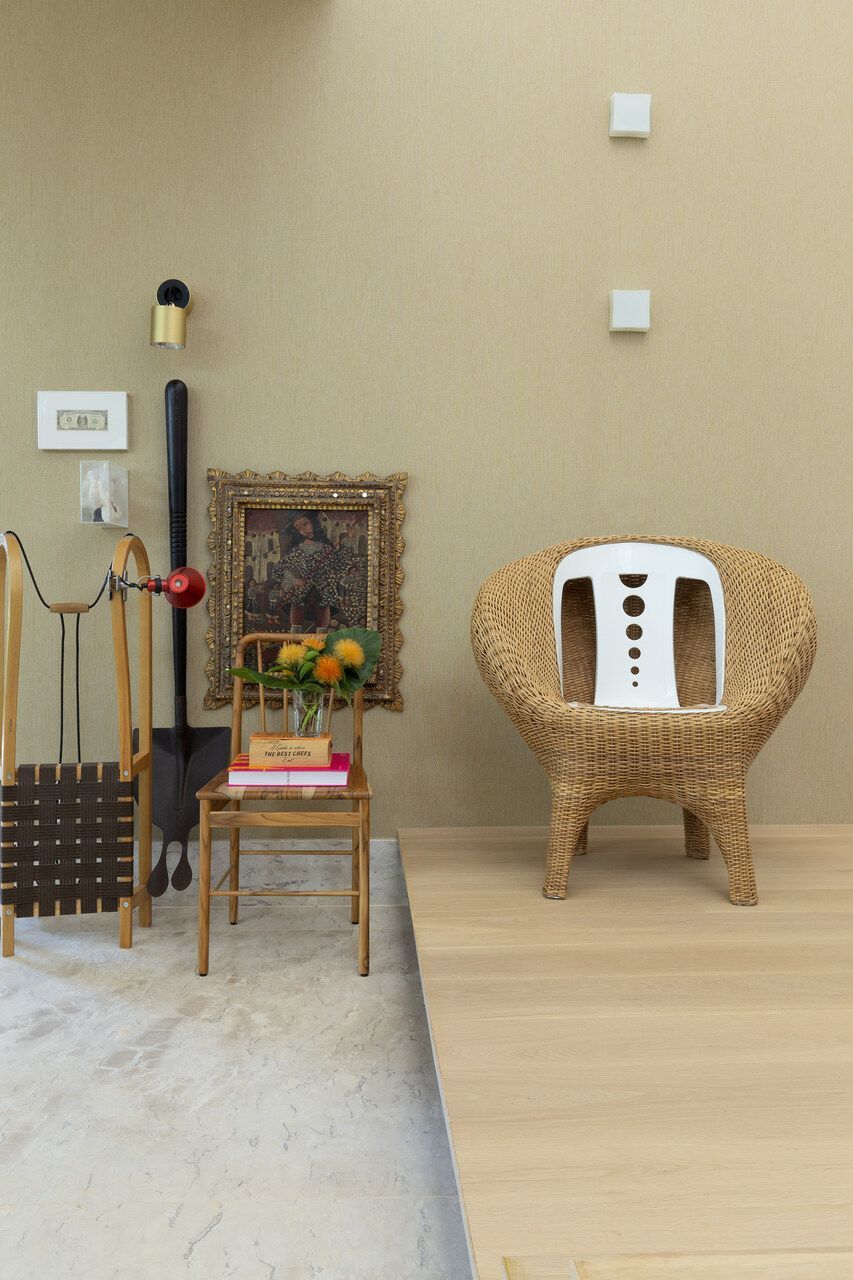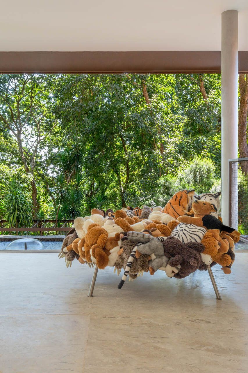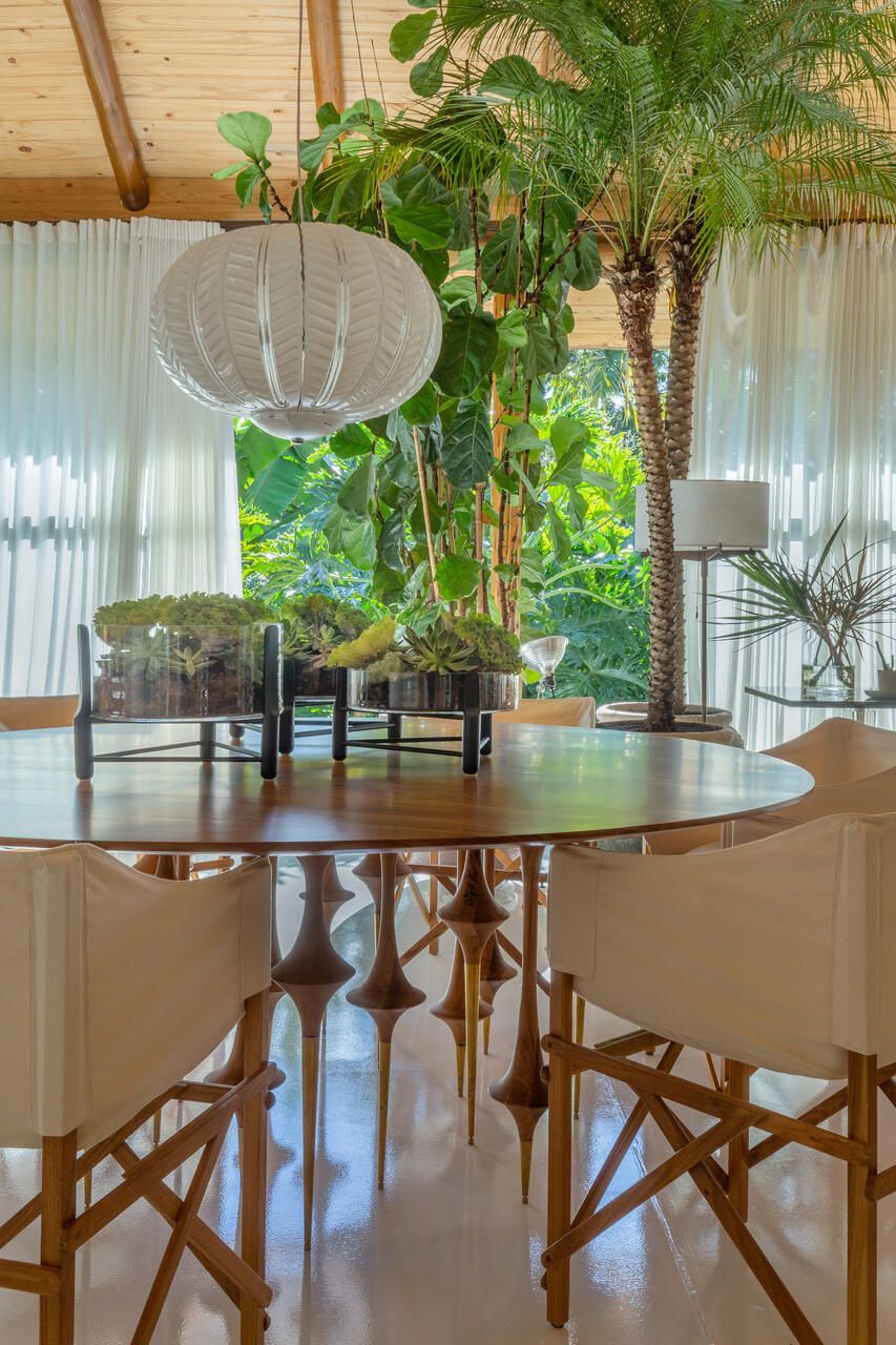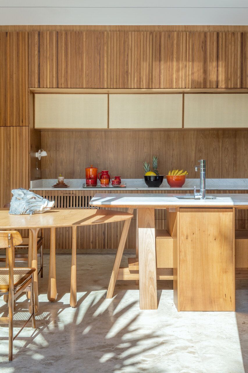 O interior é uma extensão do olhar curatorial do arquiteto. O mobiliário brasileiro divide espaço com obras de artistas de diferentes partes do mundo, compondo um ambiente que reflete sua sensibilidade estética e seu amor por tudo que é autêntico e cheio de história.