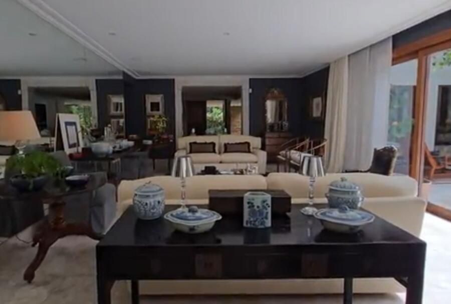Com 1.200m² de área construída e 800m² de área social, o projeto foi concebido há mais de quinze anos para acompanhar o crescimento de seus dois filhos, mas segue atual e cheio de personalidade. Inspirada nas casas de Punta, a arquitetura neoclássica ganhou novos contornos ao longo do tempo, tornando-se mais contemporânea e fluida. O paisagismo, também assinado por Ana, quebra as fronteiras entre interior e exterior com muito verde.