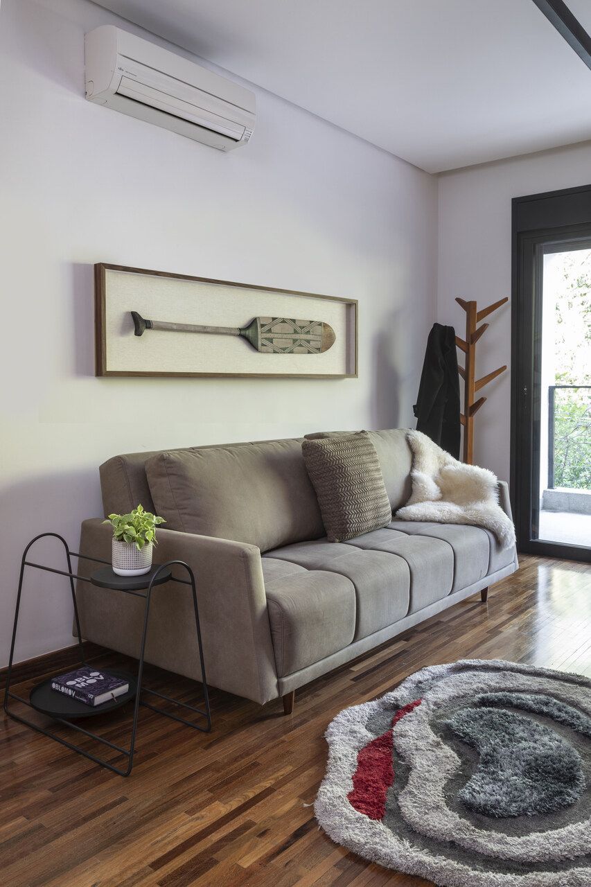 Na decoração, Mali pediu para harmonizar as peças de mobiliário, fotografias e objetos que já tinha com as novas aquisições, de estilo contemporâneo, e soluções de marcenaria projetadas sob medida.