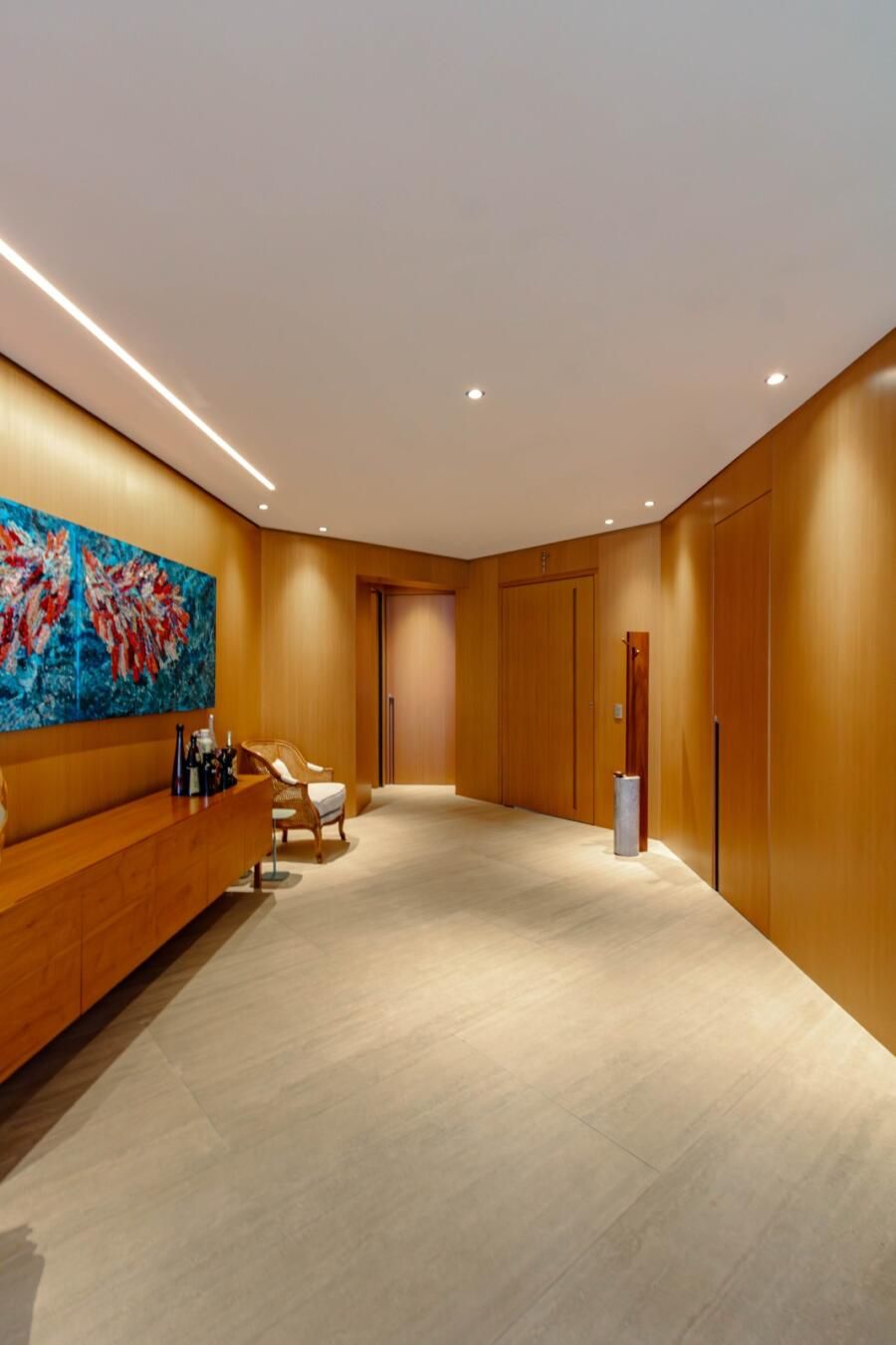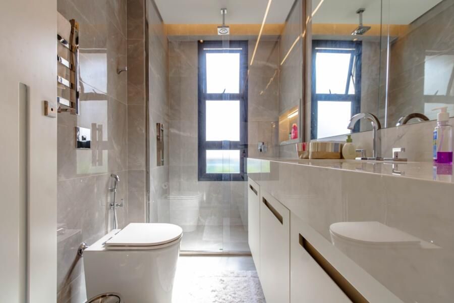 Outro ponto que chama atenção é o nível de detalhamento: automação completa, piso aquecido nos banheiros, espelhos com desembaçador, marcenaria Ornare em todo o apartamento. São escolhas que, mais do que impressionar, fazem diferença na rotina. No fim, o que fica é a sensação de um apartamento que não foi pensado só para mostrar, mas para funcionar de verdade. E isso, para mim, faz toda a diferença!