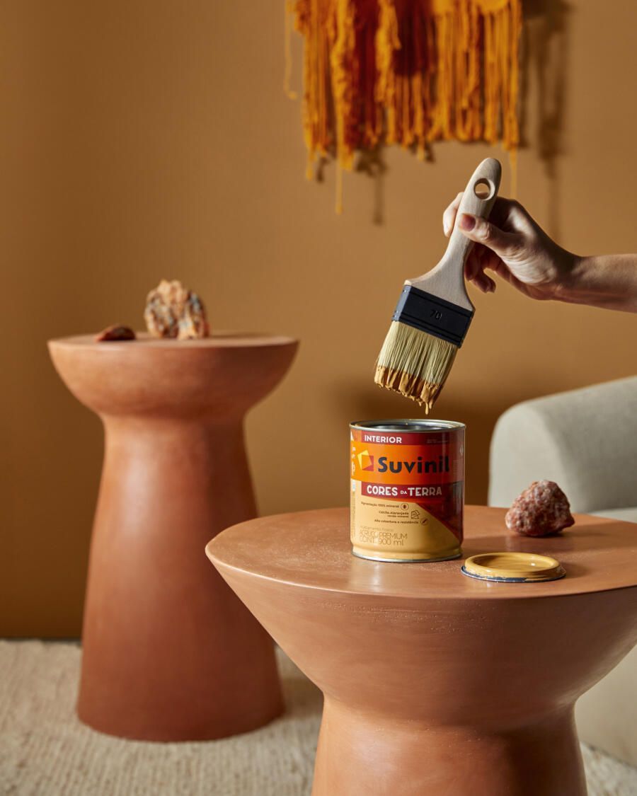 Calcita alaranjada é a cor do ano apresentada pela Suvinil no Revela 2023, evento que trouxe ainda sua tinta em versão inédita e limitada, com pigmentação 100% mineral. Feita a partir da combinação de argilas, a tinta dispensa o uso de pigmentos sintéticos em sua composição.