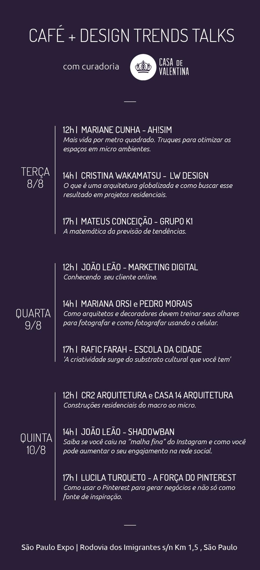 Bom, recebi um convite para fazer a curadoria de vários Bate Papos que acontecerão lá em um espaço de café e bate papo bem bacana que será assinado pela arquiteta Bianca Carbajo Burini – esta etapa por sinal foi muito bacana, a Bianca participou de uma seleção em que recebemos mais de 30 projetos MUITO bacanas e tanto a equipe aqui do Casa de Valentina quanto a equipe da High Design penamos até escolher um único projeto.