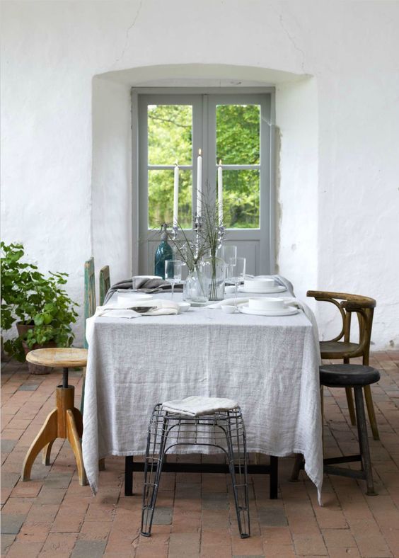 Na Europa, principalmente Espanha e Itália, usa-se muito aquelas toalhas de linho lavado e molinho – muitas vezes amassadas mesmo – em almoços ao ar livre e jantares informais.