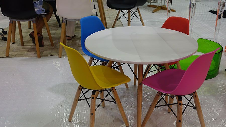 Ahhh, os clássicos do design também estão na Abimad! As cadeiras Eames todas coloridinhas – uma graça – estão com tudo! Estas são da