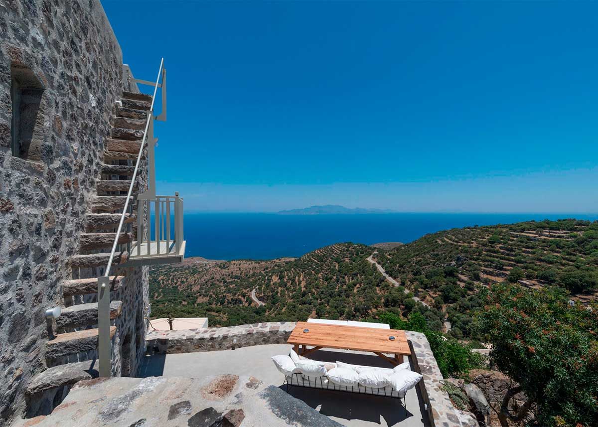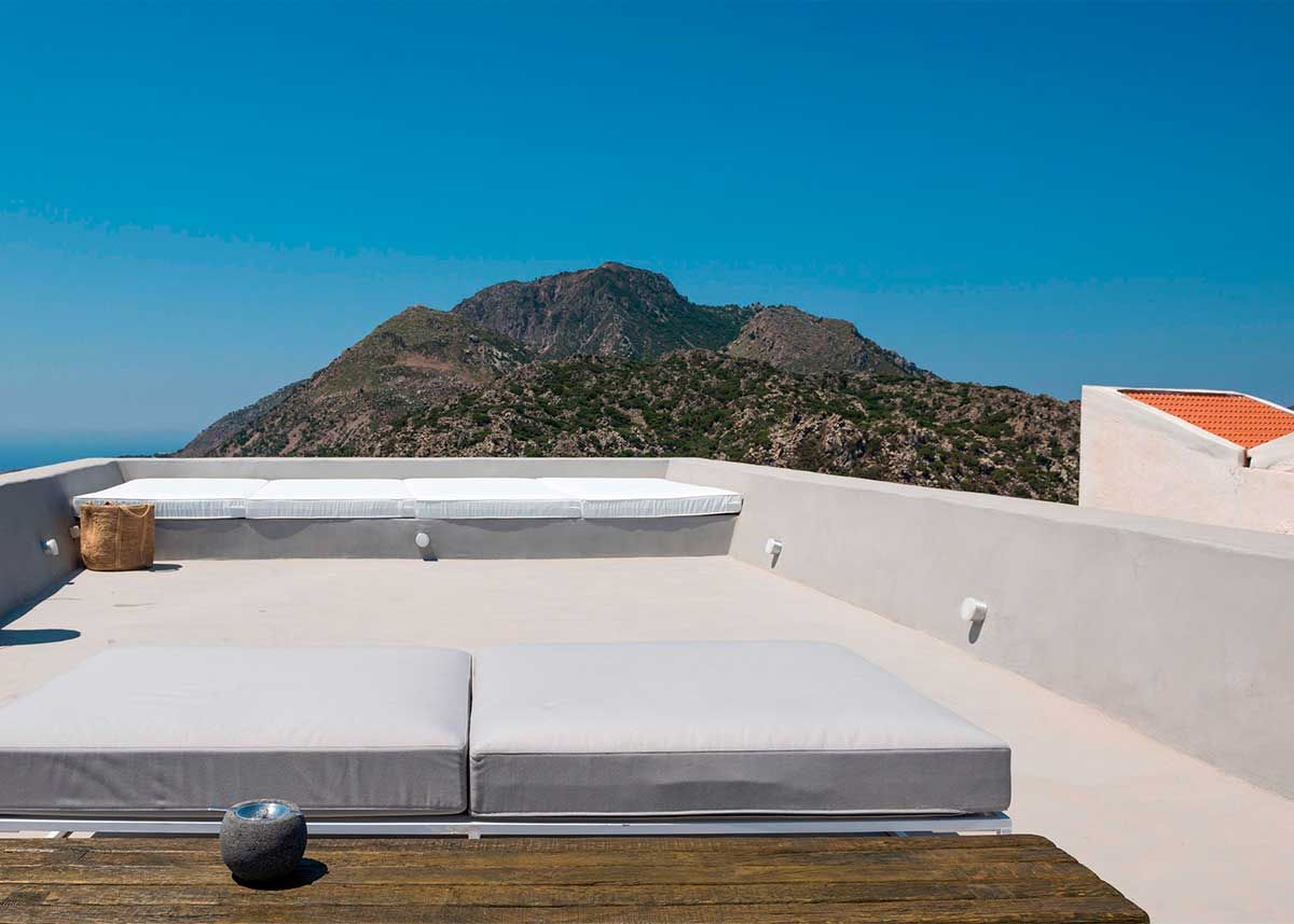 Bom, digo isso pq nesta época do ano, mais do que nunca, eu tenho vontade de chegar em casa e encontrar algo assim, como essa casa aqui na ilha vulcanica de Nisyros, Grécia. Essa casa foi feita para ser alugada para os turistas que procuram uma vista deslumbrante mas calma e paz, sem o agito e a badalação de Myconos, por exemplo.