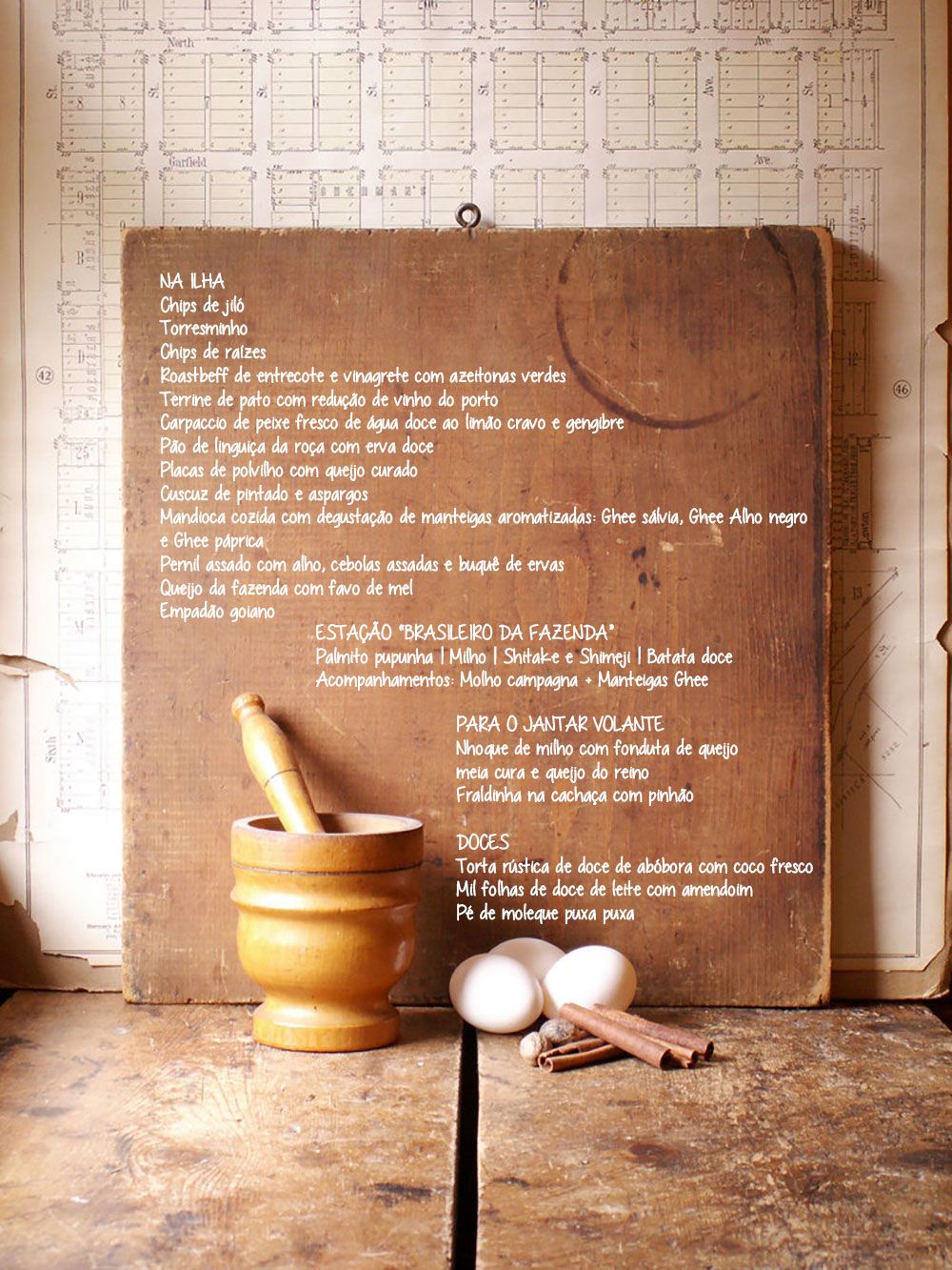 Os arranjos meio desconstruídos, os tons esmaecidos, as folhagens… Achei lindos! O cardápio também foi pensado nos detalhes e já me contaram que estava delicioso ;-) Dá só uma olhadinha…
