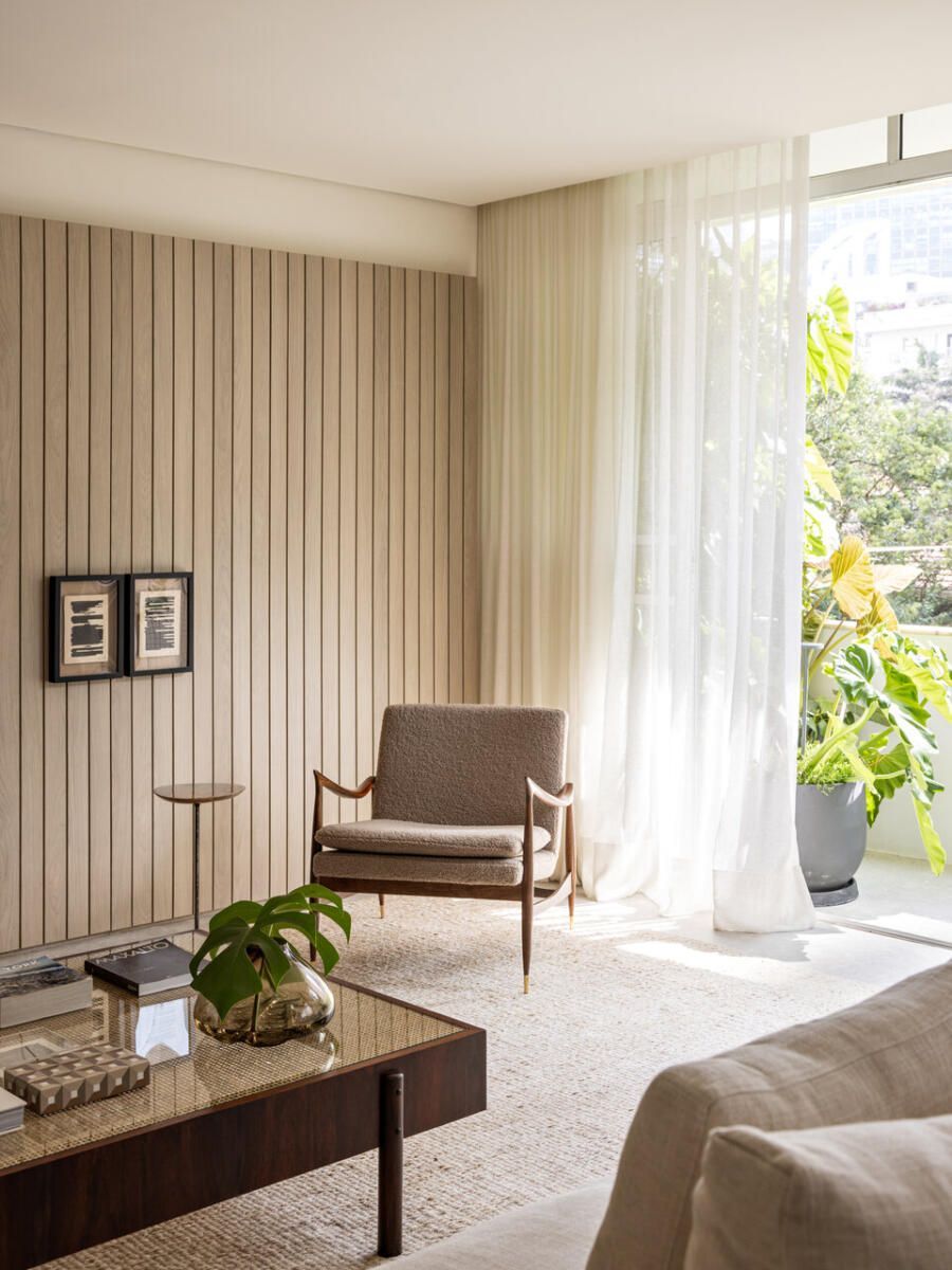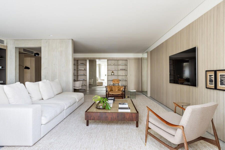O apartamento do Open House de hoje é o lar do arquiteto Alexandre Dal Fabbro. O imóvel, cuidadosamente reformado, foi pensado para ser um espaço suave e fluido, com cores leves e uma iluminação natural que se harmoniza com o paisagismo da varanda. O arquiteto buscava criar um ambiente atemporal e confortável, diferentemente de seu antigo apartamento, onde predominava o uso de madeiras escuras.