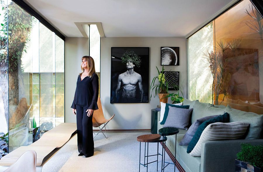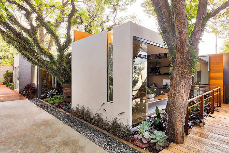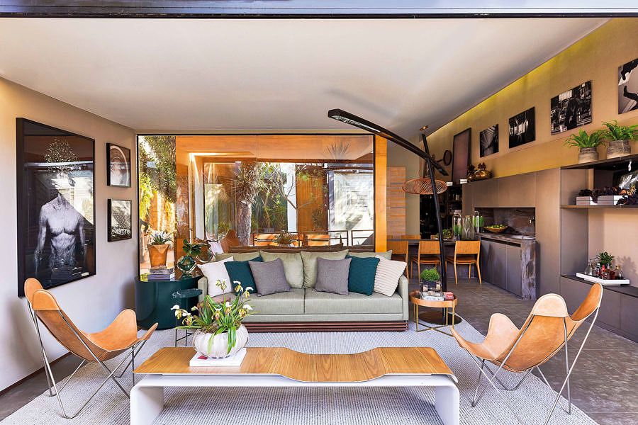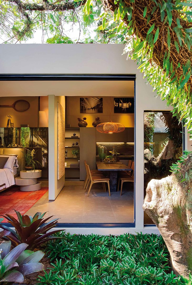 O ambiente assinado pelo escritório Jóia Bergamo para a CasaCor SP é a Casa do Escritor. O ambiente de 100m² é todo envidraçado e recheado de arte e peças de grife. O jardim, com paisagismo assinado por Marcia Politi, pode ser visto a partir da cozinha.