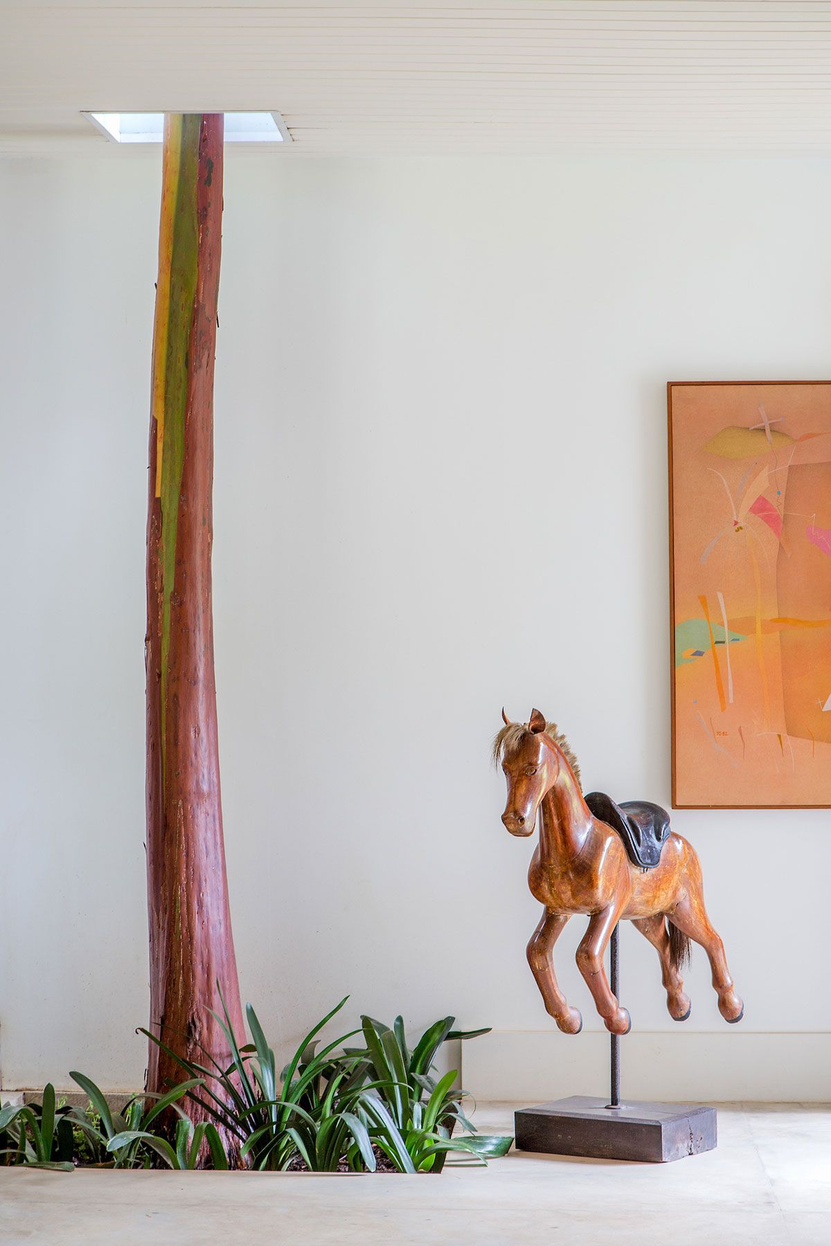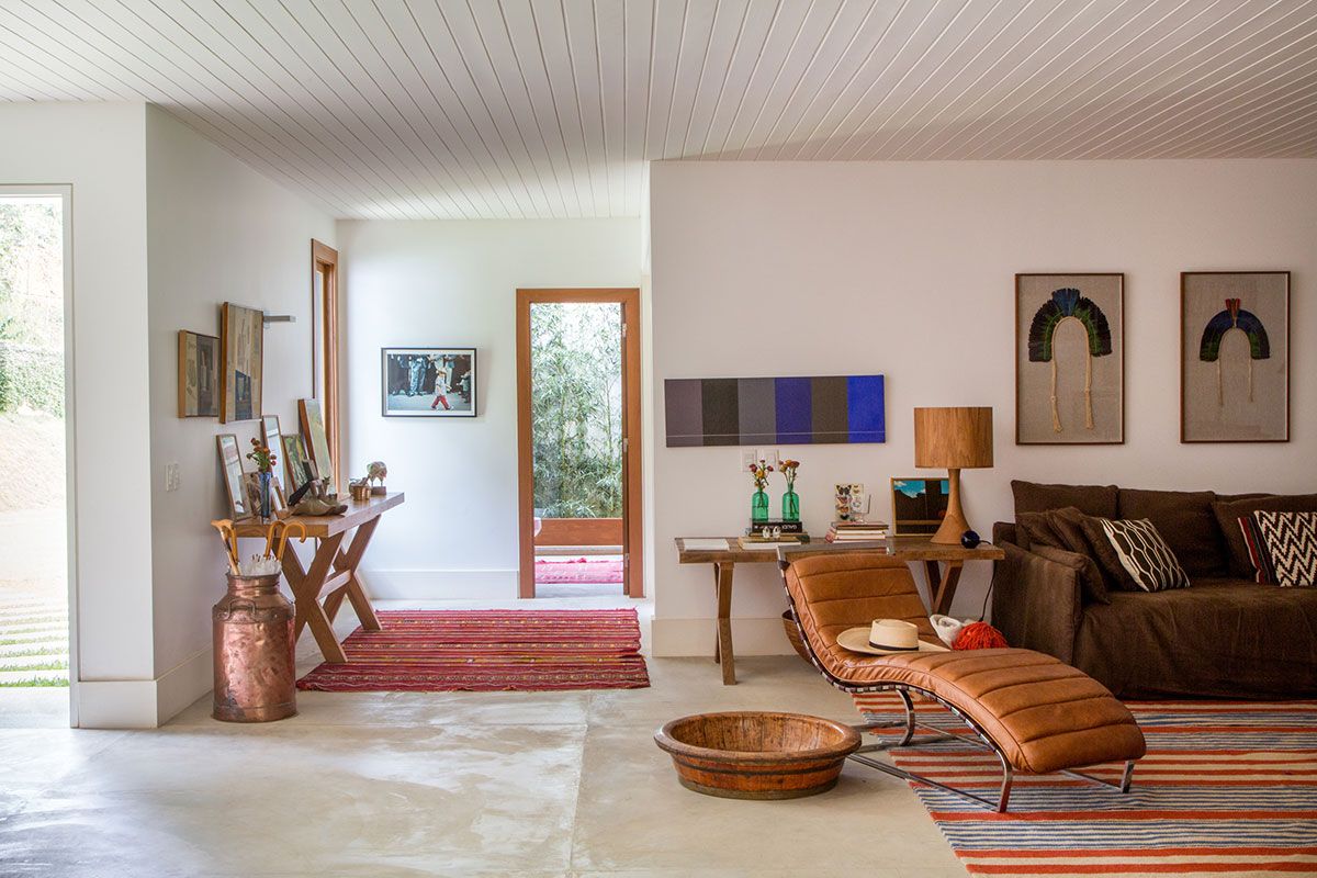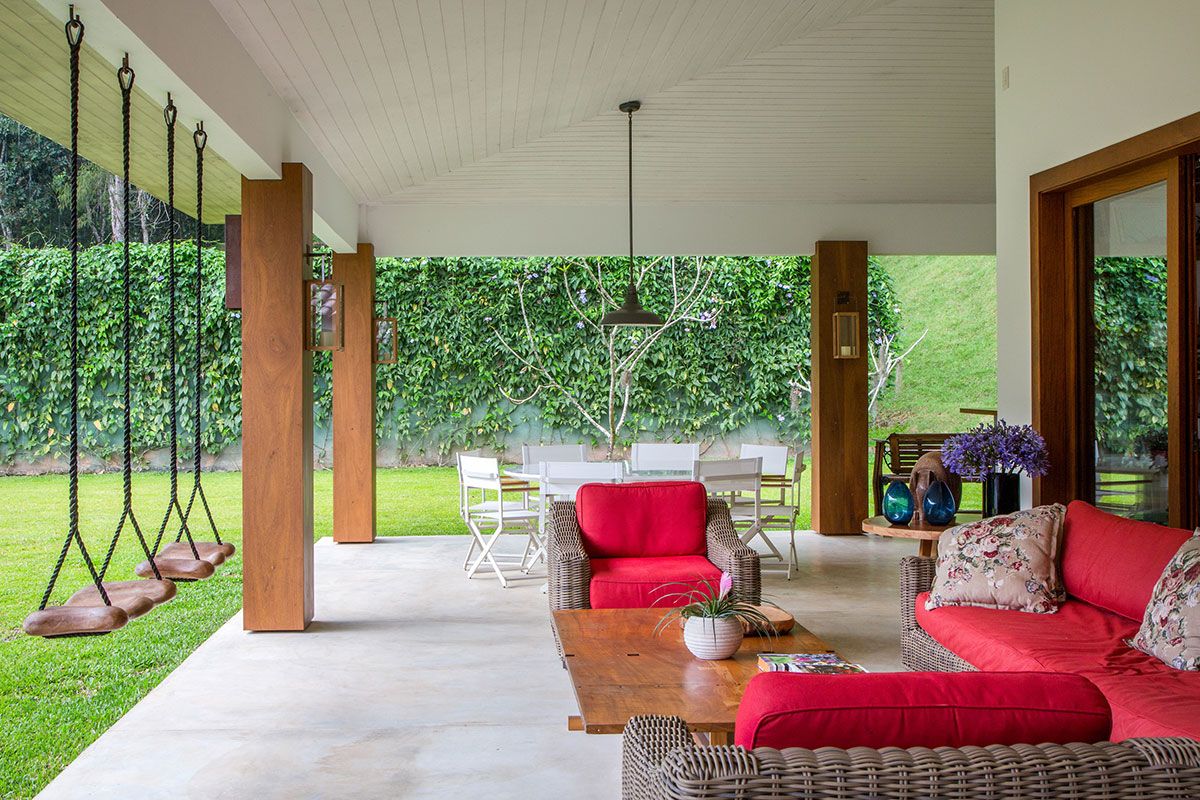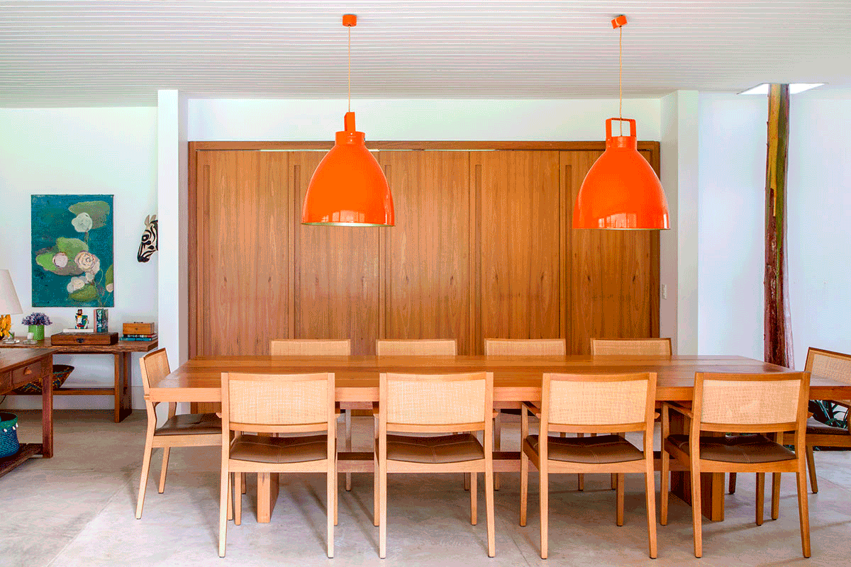 Com sala, sala de jantar, sala de TV, cozinha e varanda integrados, a casa tem 460 m² de área construída, incluindo cinco espaçosas suítes, todas com vista para a mata. A mesa de jantar de 3,5 metros é o coração da casa e, propositalmente, de forma que nenhuma refeição dura menos que três horas.