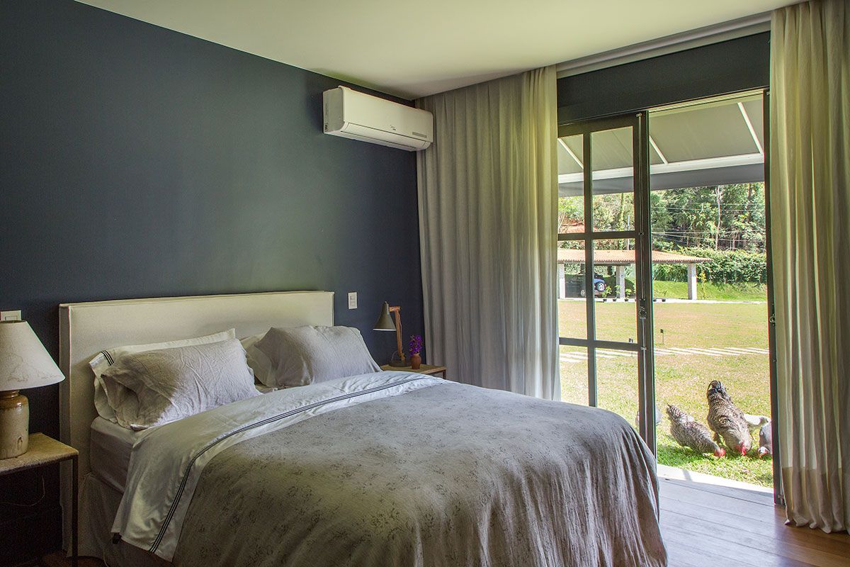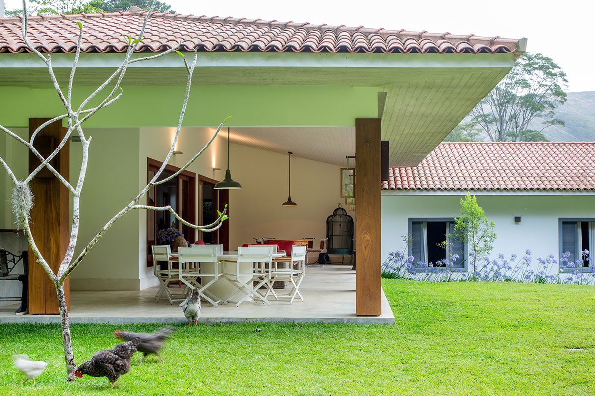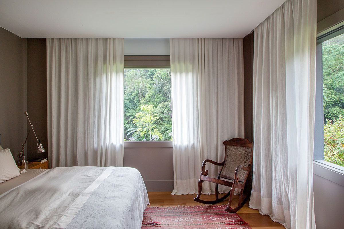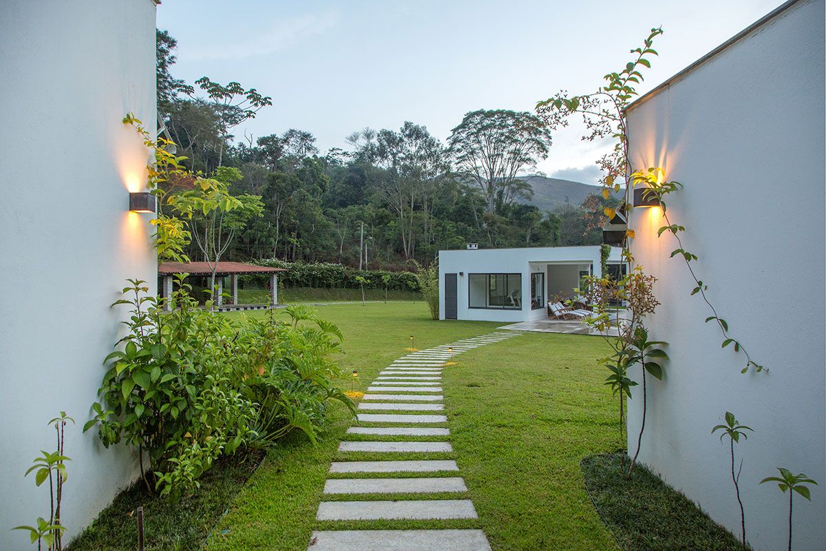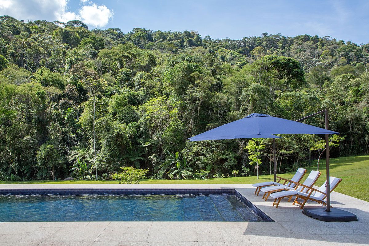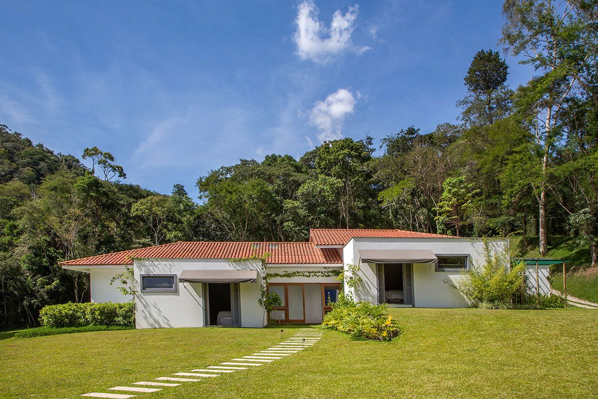 O terreno de 17 mil m² já pertencia à família há 20 anos. Projetada por Lucilla Pessoa de Queiroz e Luciana Rubim, a obra durou dois anos, o que propiciou um estudo minucioso da posição do sol e das nuances do terreno que, além de ser quase plano, é abraçado por uma mata virgem tombada, circundada por um riacho.