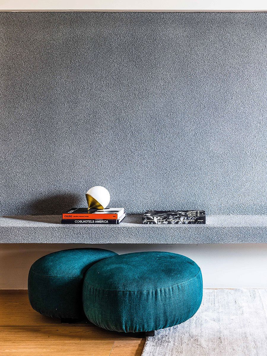 O imóvel é um ponto de apoio para o proprietário, um médico que mora sozinho e trabalha em uma cidade vizinha. Um de seus pedidos foi a integração dos ambientes com uma paleta que remetesse ao aconchego, com pouco mobiliário e atmosfera clean.