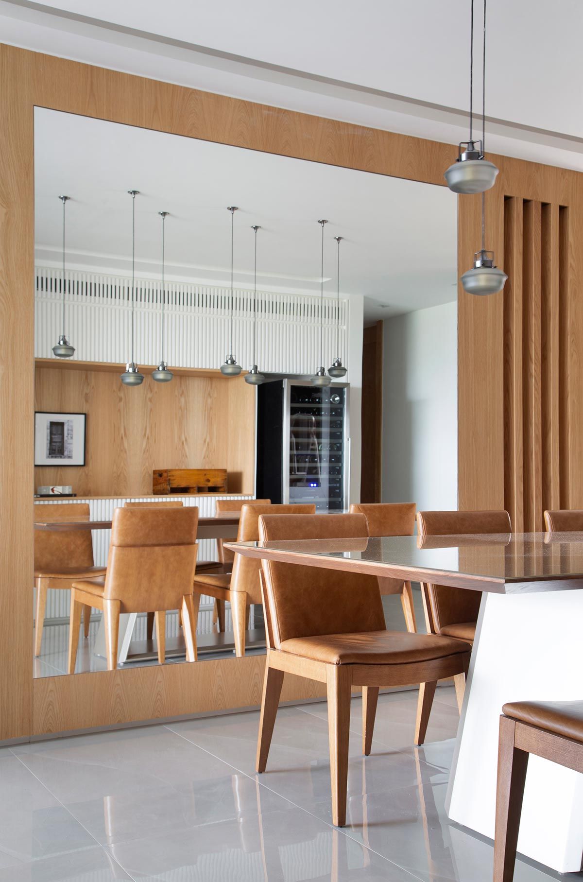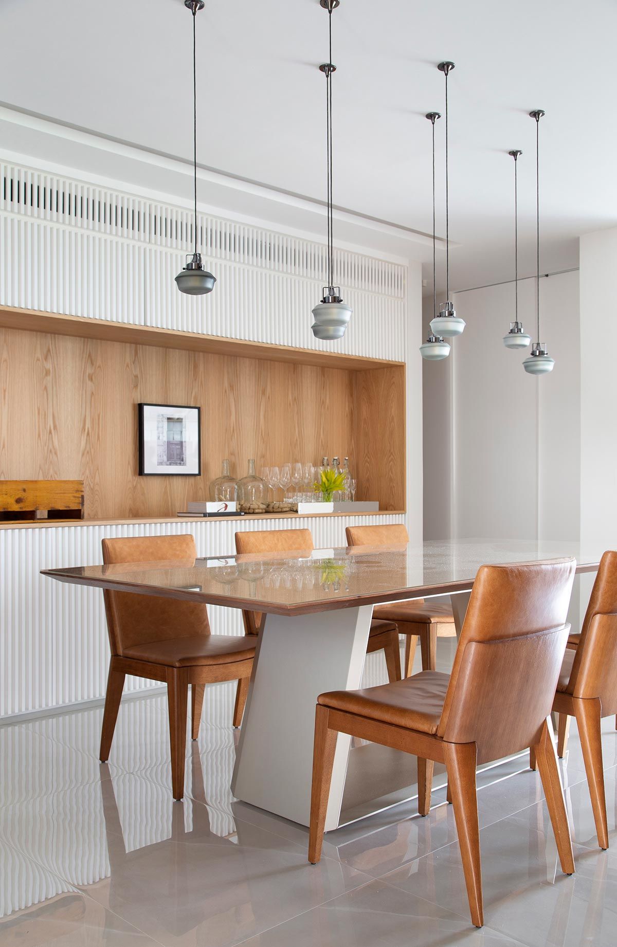 A nova morada de um casal com dois filhos é um apartamento no bairro carioca Flamengo, com vista para um dos cartões postais do Rio de Janeiro, o Pão de Açúcar. O imóvel ganhou novo layout nas mãos da arquiteta Bianca da Hora, amiga do casal e responsável também pelo projeto do apartamento anterior da família, que buscava um espaço maior. O casal, ambos com cerca de 35 anos, ela do mercado financeiro e ele do ramo da hotelaria, fez dois pedidos: explorar a entrada da luz natural, para iluminar os ambientes, e integrar a cozinha à sala.