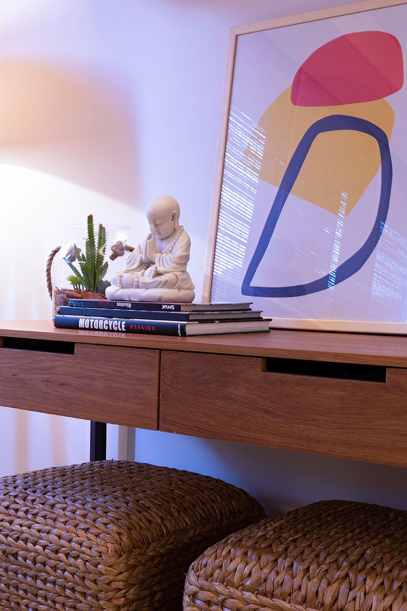 Os clientes procuraram o Mira Studio, pois gostariam que o apartamento de 120m², no Humaitá, Rio de Janeiro, tivesse uma atmosfera aconchegante apenas com decoração, sem obras, pois o imóvel é alugado.