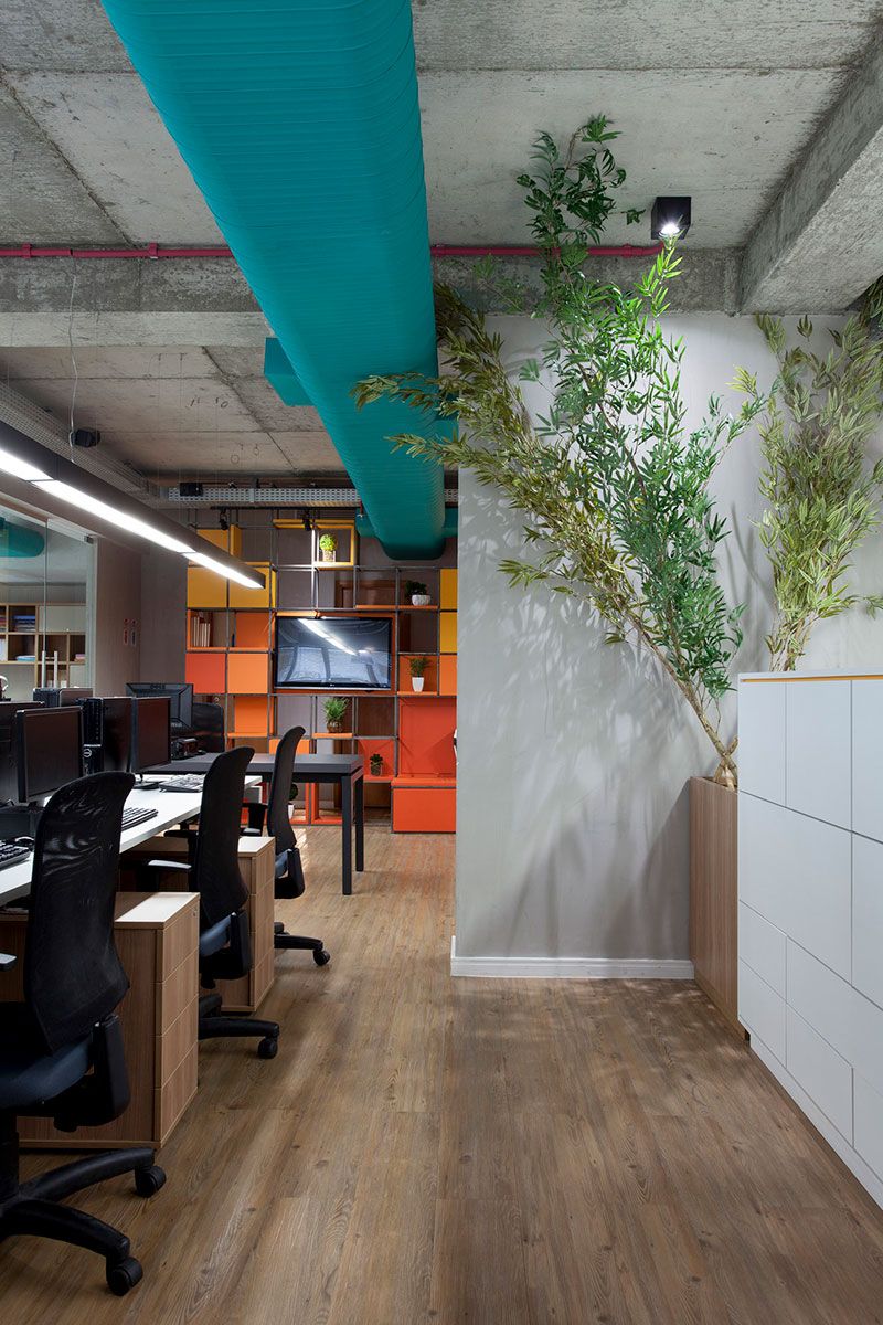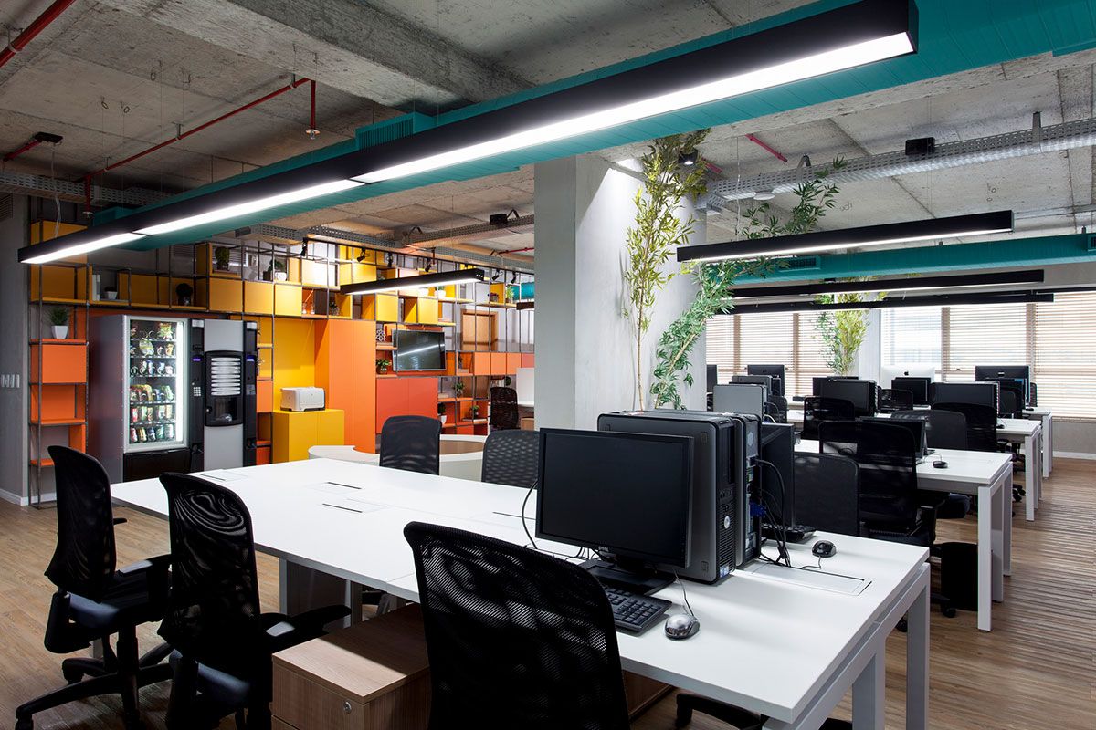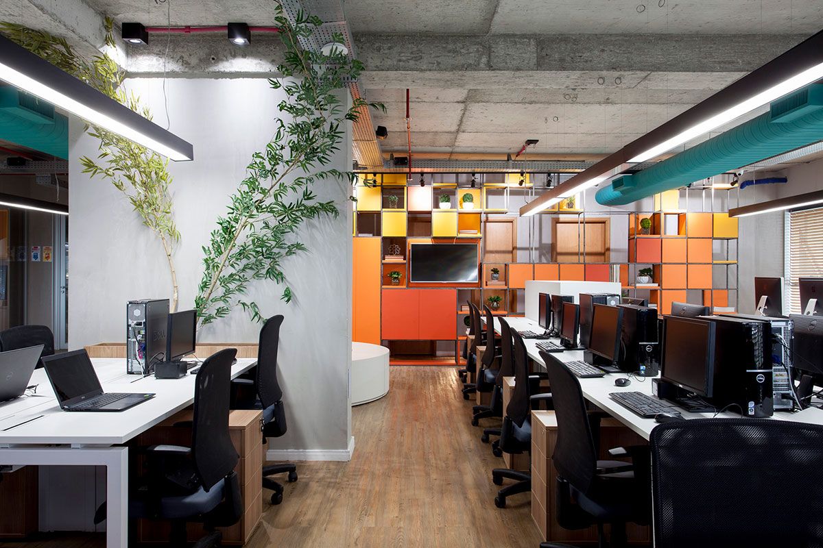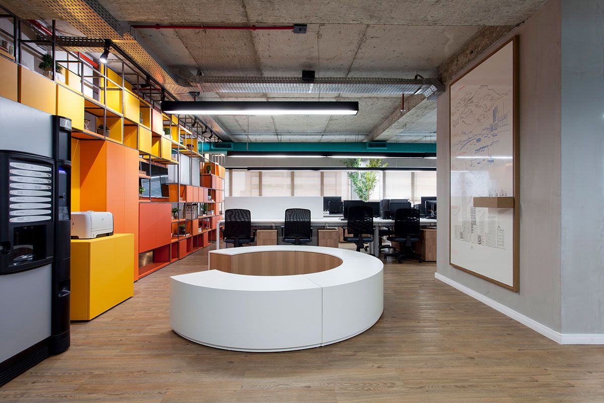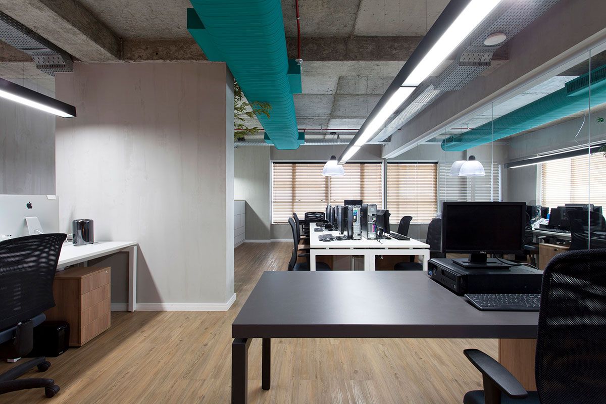 Na nova proposta de integração, os setores internos ganharam mesas lineares integradas completamente uma com as outras, com sua liderança na ponta observando toda a produção. A estética brutalista aparece no teto aparente – conforme a construtora do edifício deixou, na tubulação do ar-condicionado que foi pintado com a cor da marca da Agência de Publicidade e na estrutura metálica da estante que congrega todos os arquivos e organização do ambiente. Uma arena foi criada no Open Space 02 a fim de reunir integrantes envolvidos em um único processo. A modulação dos bancos facilita a montagem de diversos formatos – desde uma arena até um banco linear; a depender da necessidade a ser abordada.