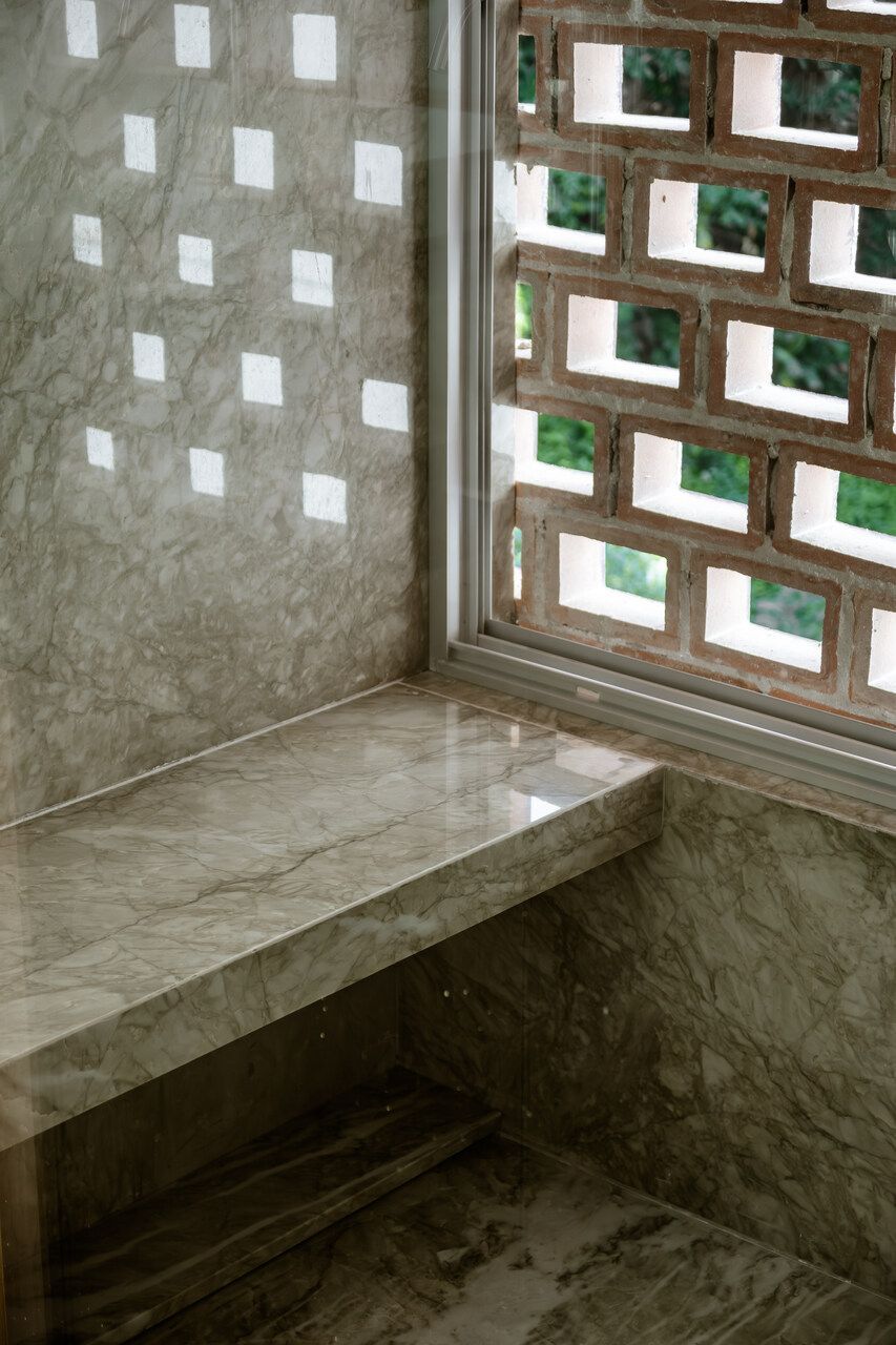 Por se tratar de uma reforma em um edifício com estrutura e instalações bastante específicas, o processo exigiu cuidado redobrado. O arquiteto descreve o trabalho como um projeto “ao vivo”: algumas limitações só se revelaram após a demolição, exigindo revisões constantes. Ainda assim, o programa inicial foi respeitado e refinado. Sete opções de layout foram estudadas até chegar à solução final, que inclui uma suíte master ampliada com semi-closet, um segundo banheiro — pensado para visitas e para o pós-praia — e uma área social integrada, sempre acompanhada pela paisagem externa.