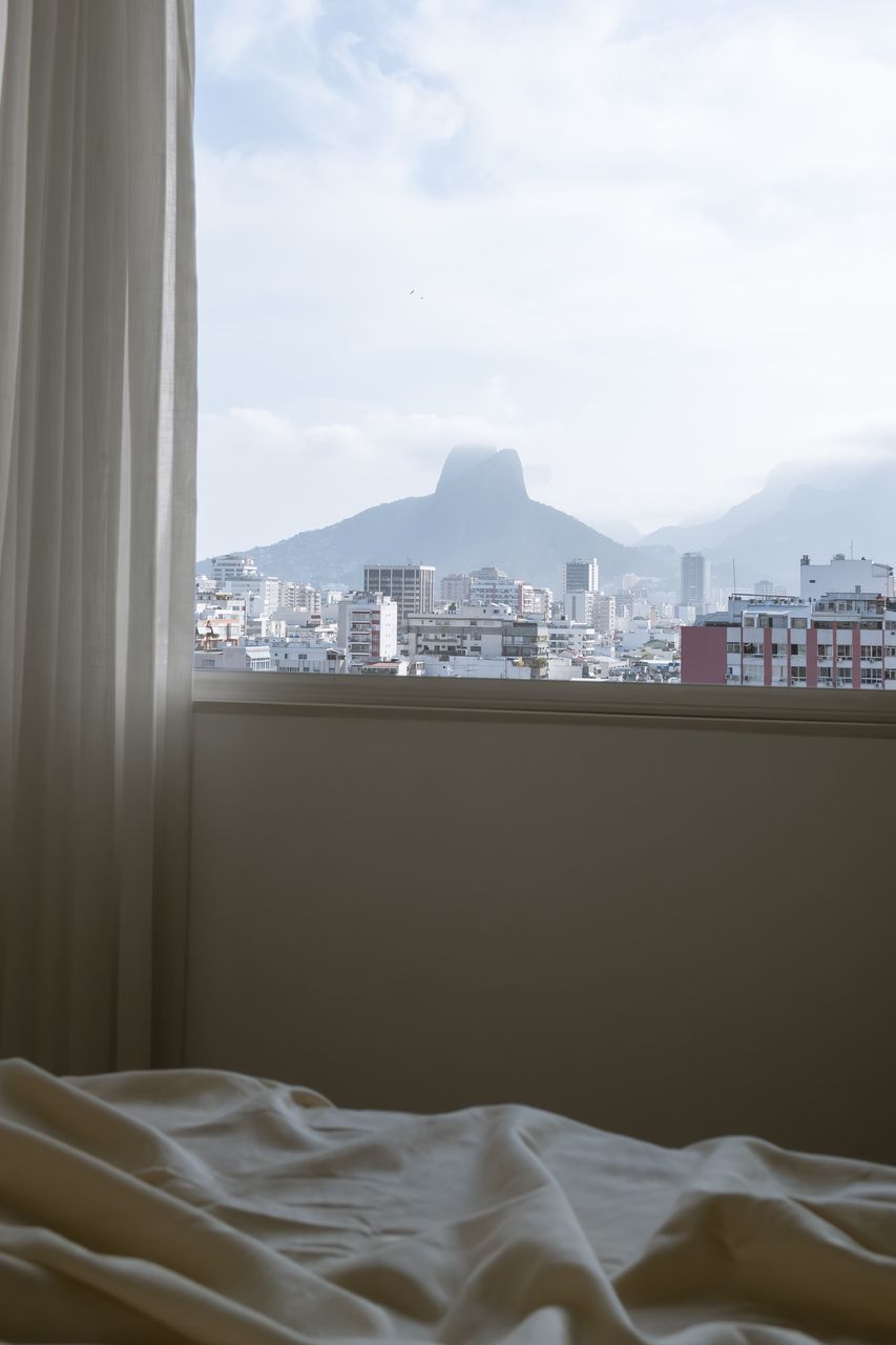 Único morador, o cliente desejava um espaço que refletisse sua personalidade e sua relação afetiva com o país. A vista para os Dois Irmãos, presente em diferentes pontos do apartamento, foi tratada como matéria-prima do projeto, assim como a luz e a ventilação natural, potencializadas pela janela em fita que percorre toda a extensão do imóvel e conduz a circulação até o quarto.