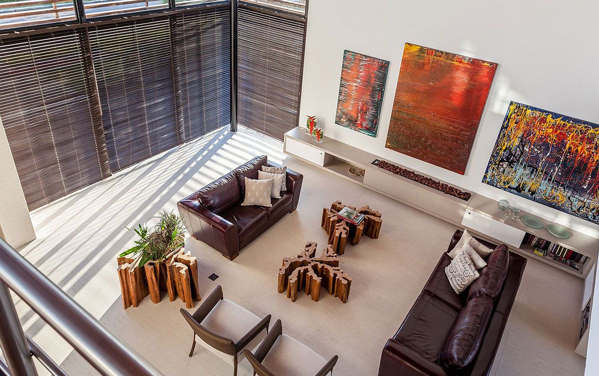 A orientação do sol foi o ponto de partida deste projeto na praia de Jurerê Internacional, em Florianópolis (SC). Marília Ruschel criou dois pavimentos para abrigar sala de estar, de jantar, 04 suítes, home office, atelier, área externa de lazer com piscina e espaço gourmet integrado, além do subsolo reservado para a garagem e a adega.