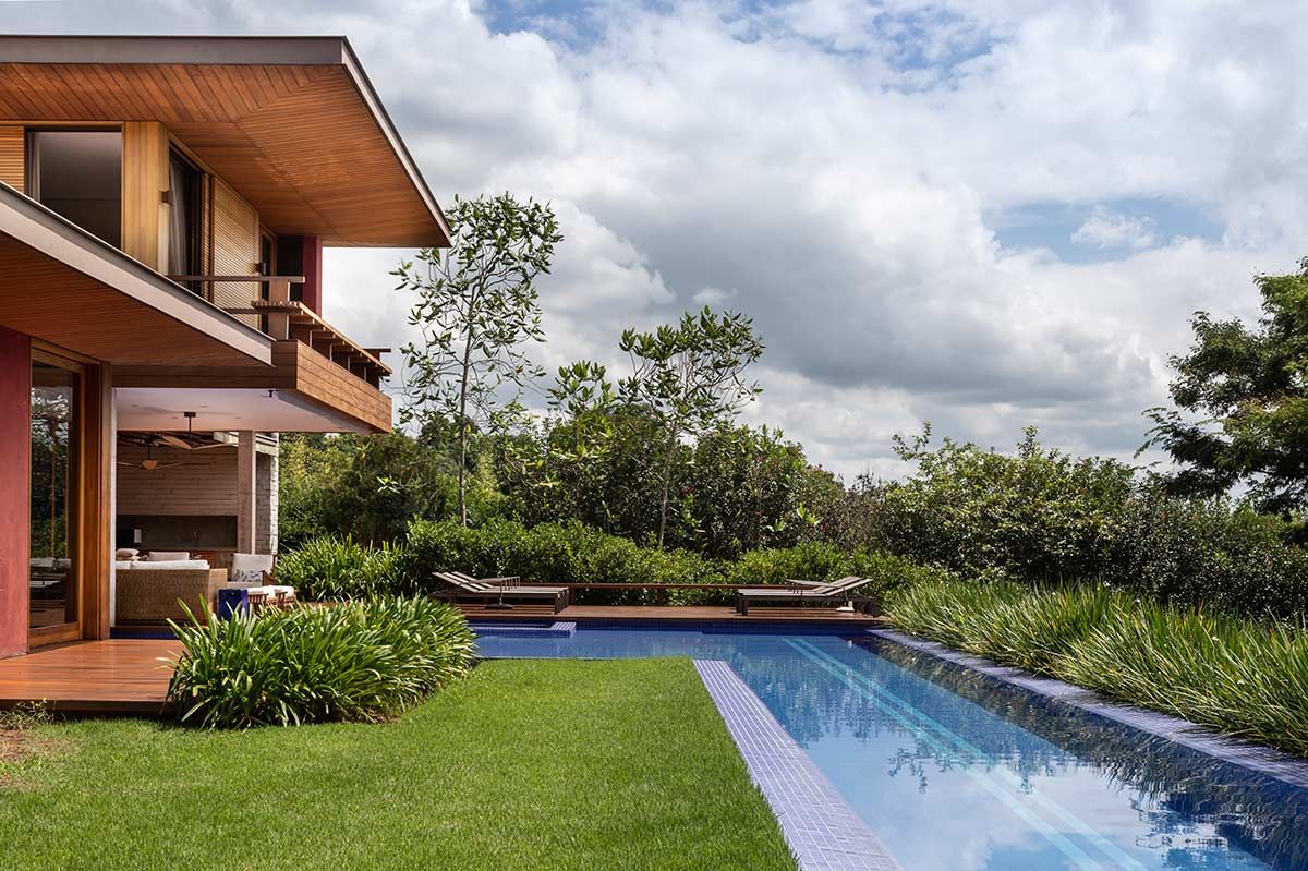 Muitos foram os pedidos dos clientes à arquiteta Gilda Meirelles para dar vida à sua casa de campo no condomínio Quinta da Baroneza – tão sonhada pela família. Amplitude foi o direcional do projeto, que conta com salas integradas ao terraço externo; cozinha aberta para sala de jantar; e, como os moradores são esportistas, uma raia de 25 metros.