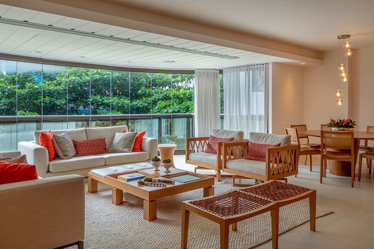 Incorporar a varanda à sala, criando um único espaço, foi uma das principais alterações que o escritório fez na planta. A parte íntima do apartamento também foi transformada, a suíte principal foi aumentada, pegando um pouco do espaço de um dos quartos. Os outros dois quartos originais foram unidos e transformados na suíte do filho. As arquitetas tornaram um apartamento de 4 quartos em 2 suítes amplas e funcionais.