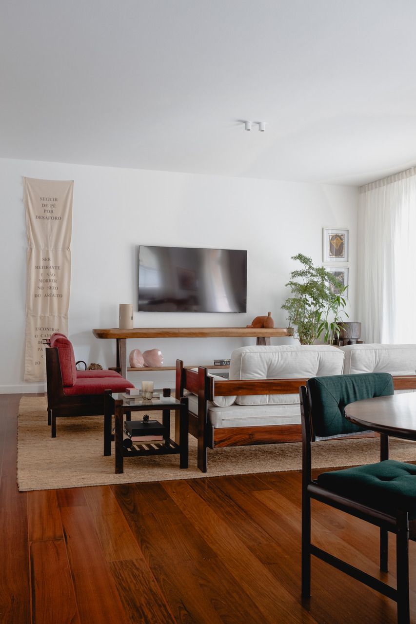 Apartamento alugado transformado em lar com mobiliário vintage e Feng Shui