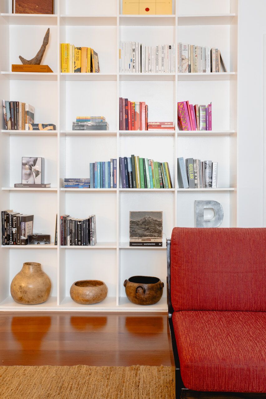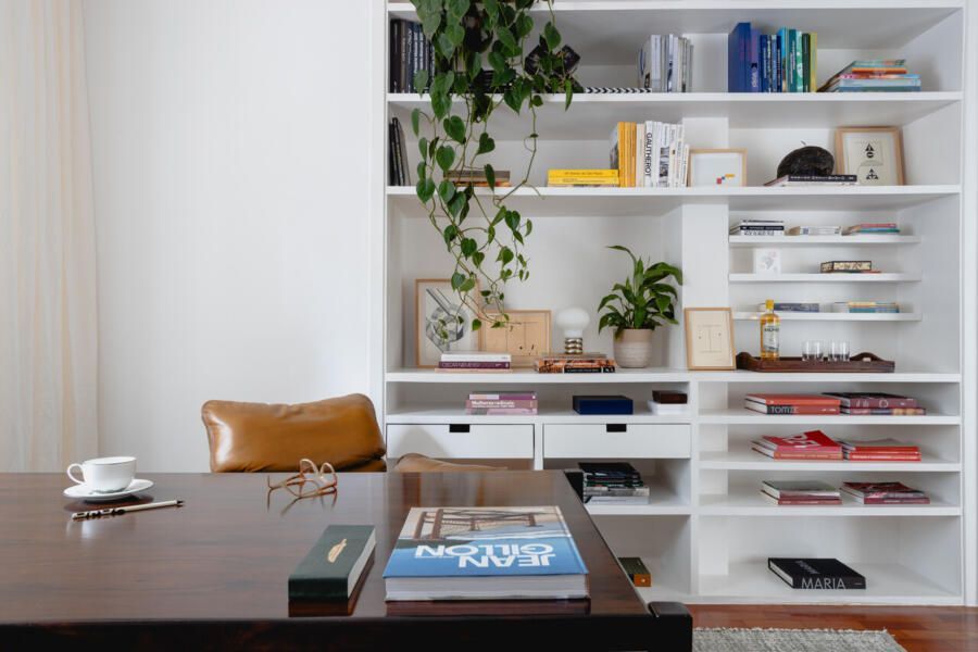 Tecnicamente, a renovação foi conduzida com inteligência de obra em parceria com a equipe de Antônio Valladares. A marcenaria fixa original foi preservada, mas ganhou uma leitura completamente contemporânea através do uso estratégico das cores. A pintura, inclusive, tornou-se a principal ferramenta de identidade, delimitando ambientes e trazendo o frescor necessário para apagar as marcas do tempo deixadas por inquilinos anteriores. Essa escolha permitiu que o investimento fosse direcionado para pontos de maior destaque e personalidade, respeitando o teto orçamentário definido.