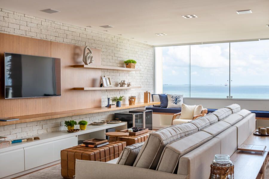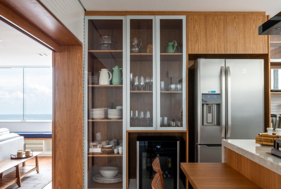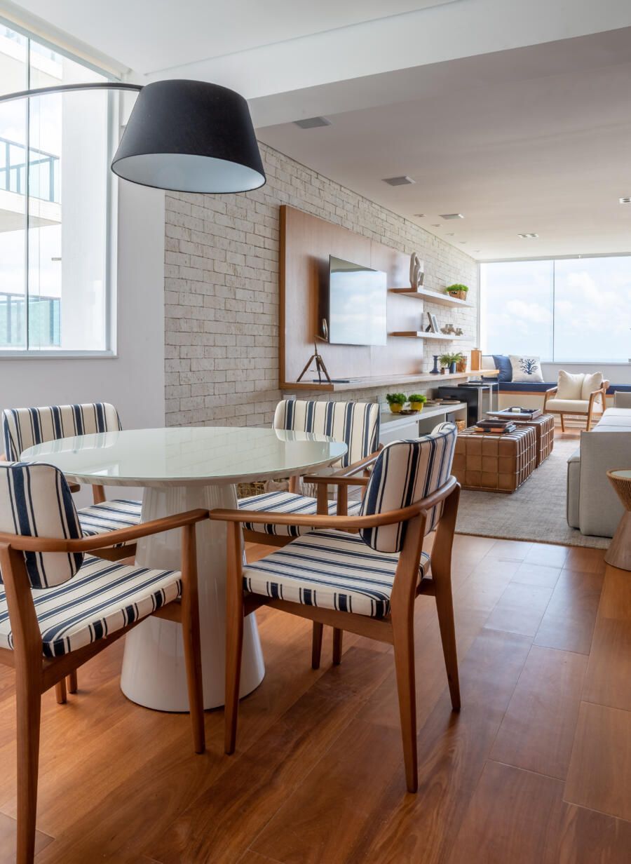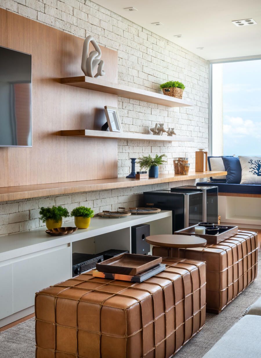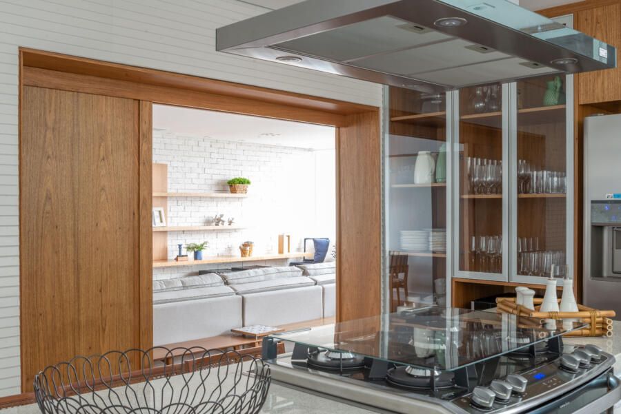 Vale ressaltar também a integração realizada entre sala e cozinha.