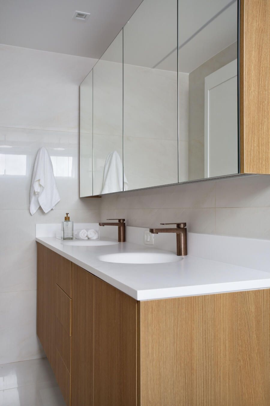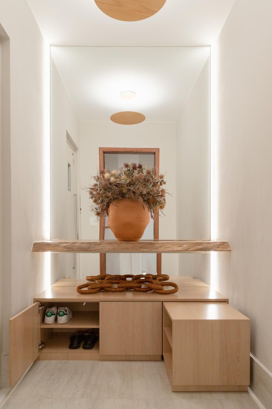 “No geral, os clientes queriam uma casa aconchegante que fosse, ao mesmo tempo, prática e funcional para o dia-a-dia. Mas o pedido principal deles foi tirar partido da área do prisma central do prédio, que consta na escritura do imóvel.”