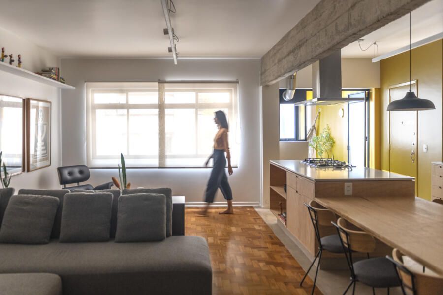 Quando o espírito carioca encontra o brutalismo paulistano, temos como resultado um lindo projeto! Essa foi a premissa do escritório COTA760 Arquitetura para transformar um apartamento antigo neste lar cheio de personalidade.