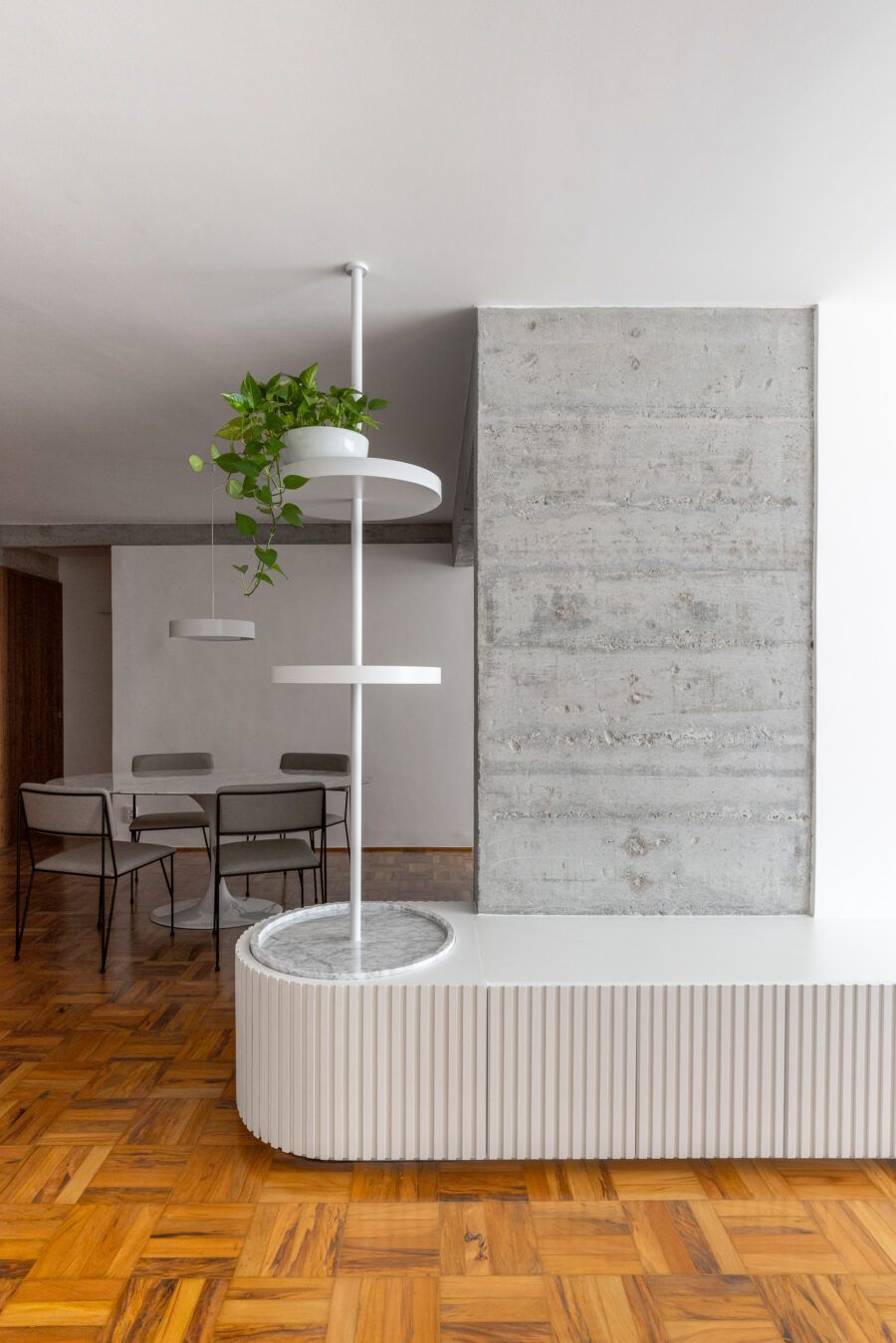 Um apartamento claro e iluminado. Este foi o pedido do morador, prestes a se aposentar e natural do Ceará, ao escritório Balaio Arquitetura, que assina o projeto de 100m² pensado para facilitar a moradia do cliente durante suas frequentes visitas à São Paulo.
