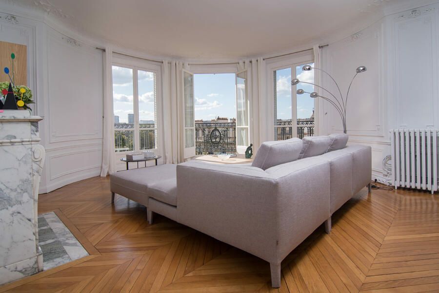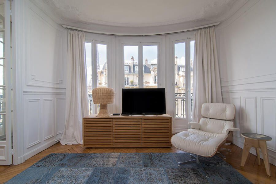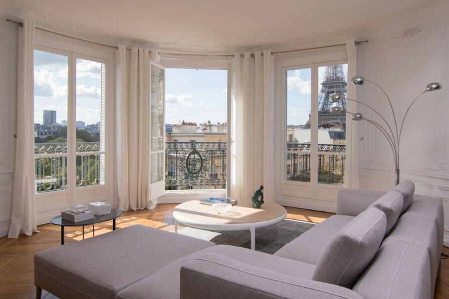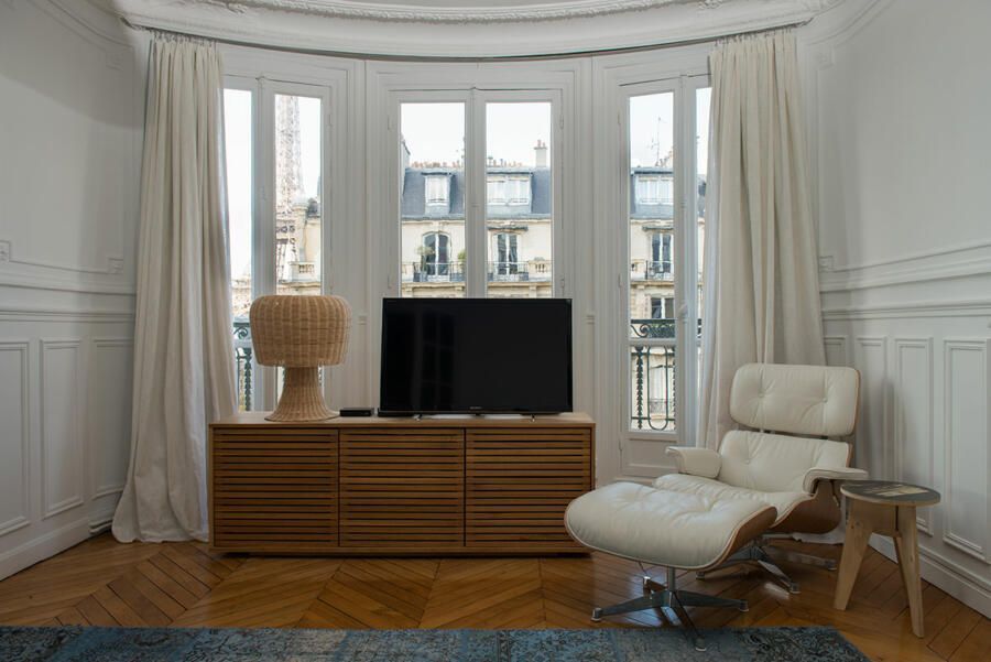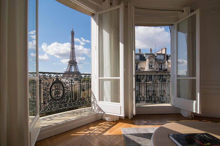 Todos deveriam ter a oportunidade de viver uma cena clássica de filme e se a cena fosse parisiense provavelmente se passaria neste apartamento com vista para a Torre Eiffel.