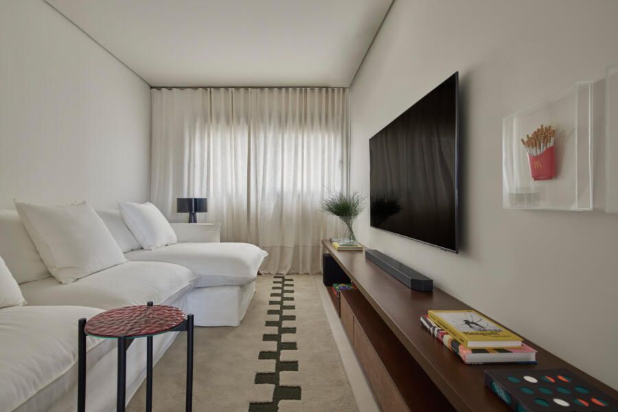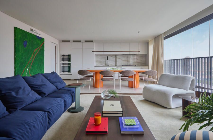 O apartamento no Itaim-Bibi é mais do que um lar; é um espaço vivo, onde a estética clean e cores vibrantes coexistem, onde sofisticação encontra emoção, e onde cada detalhe revela a alegria, a intensidade e a personalidade de quem o habita. Entre hall, sala e quartos, é na sala de estar que essa singularidade se revela plenamente, ampla, acolhedora e repleta de peças que fazem do cotidiano uma experiência estética e sensorial única.