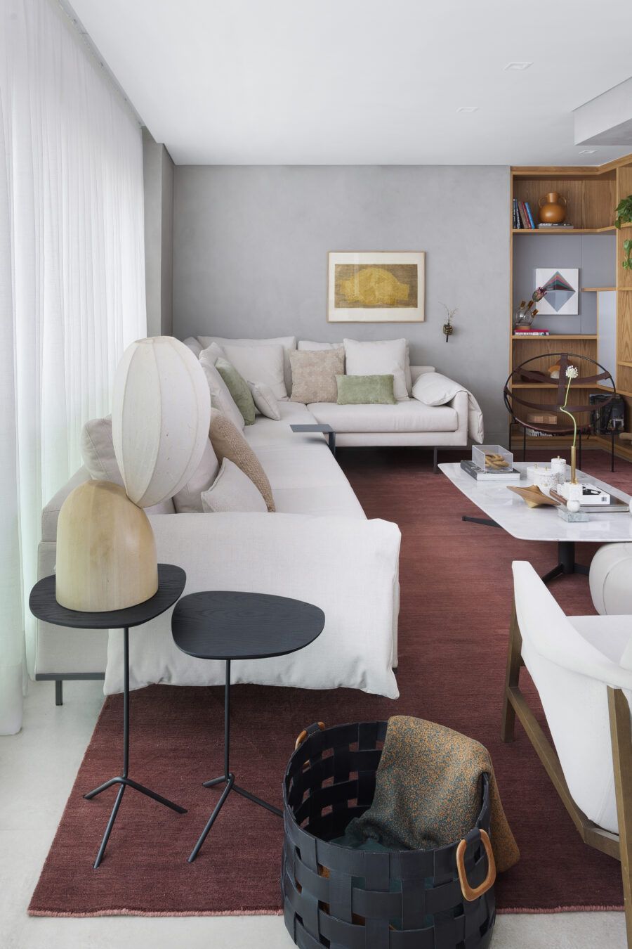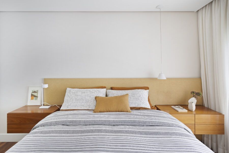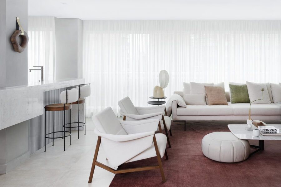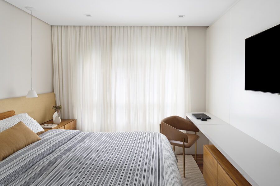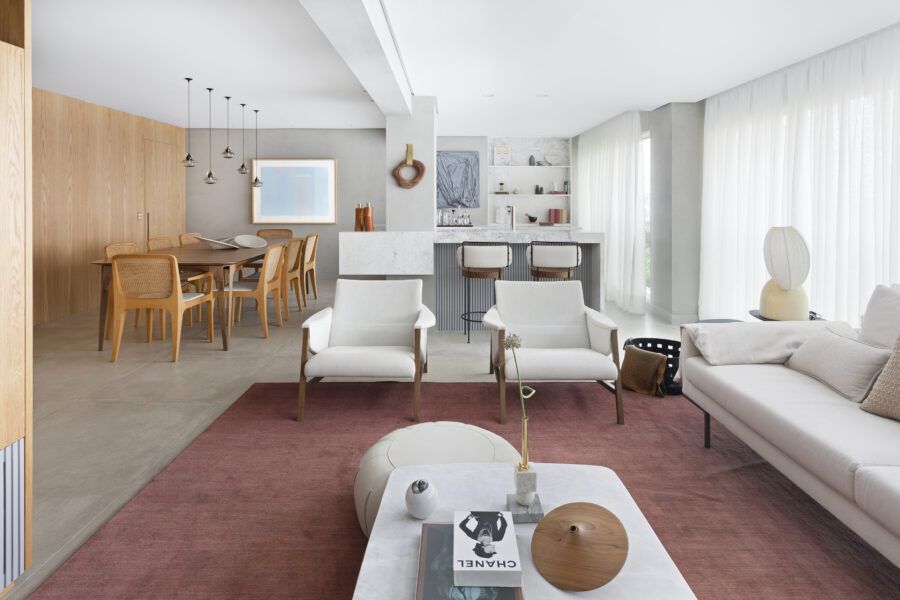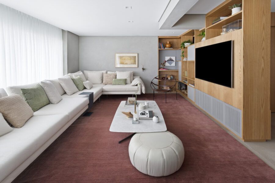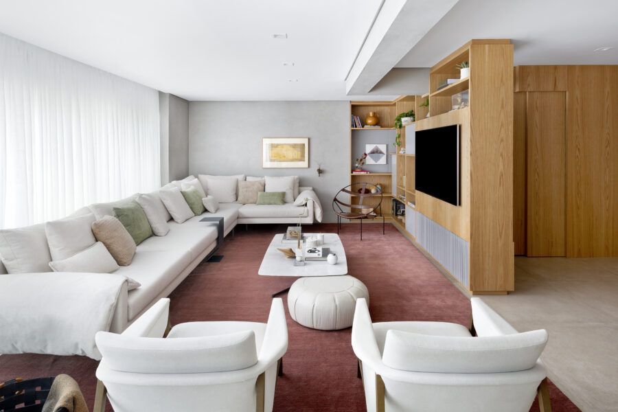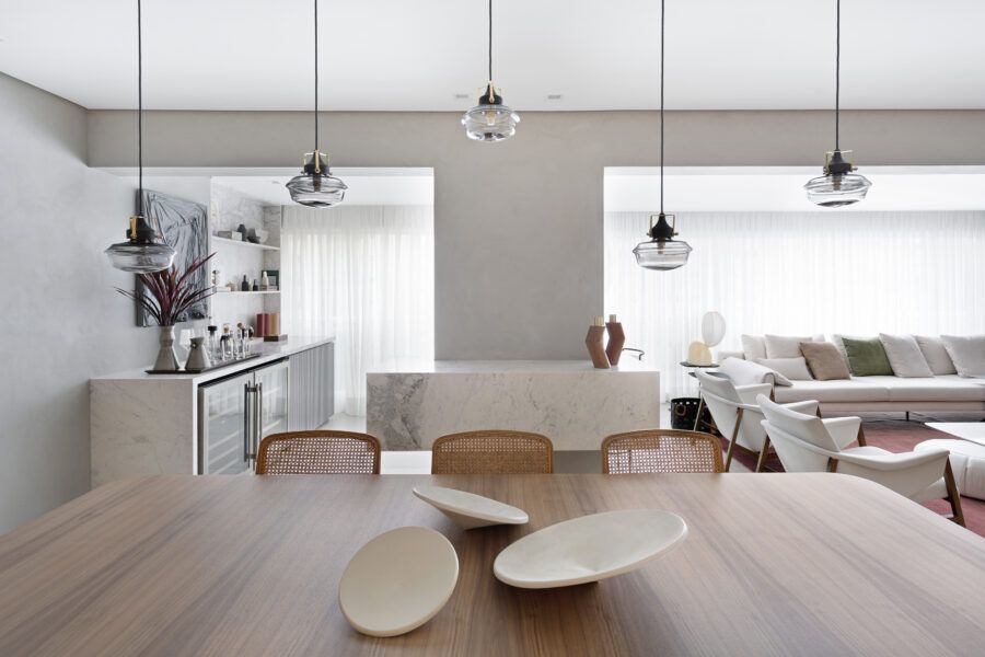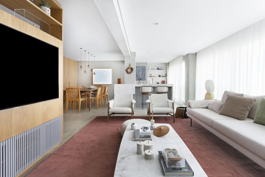 “Os clientes queriam mudar completamente a cara do apartamento. Já na nossa primeira reunião entendi que eles desejavam um apartamento moderno, clean e aconchegante. O principal pedido deles foi deixar a sala mais ampla possível também. Gostam de design e arte, e isso é super presente no apartamento, nas escolhas dos móveis, quadros e objetos de decoração.”