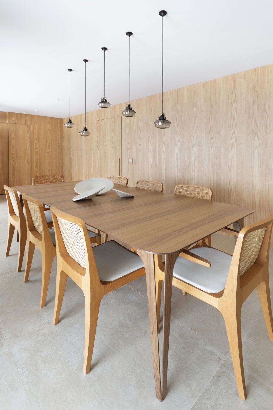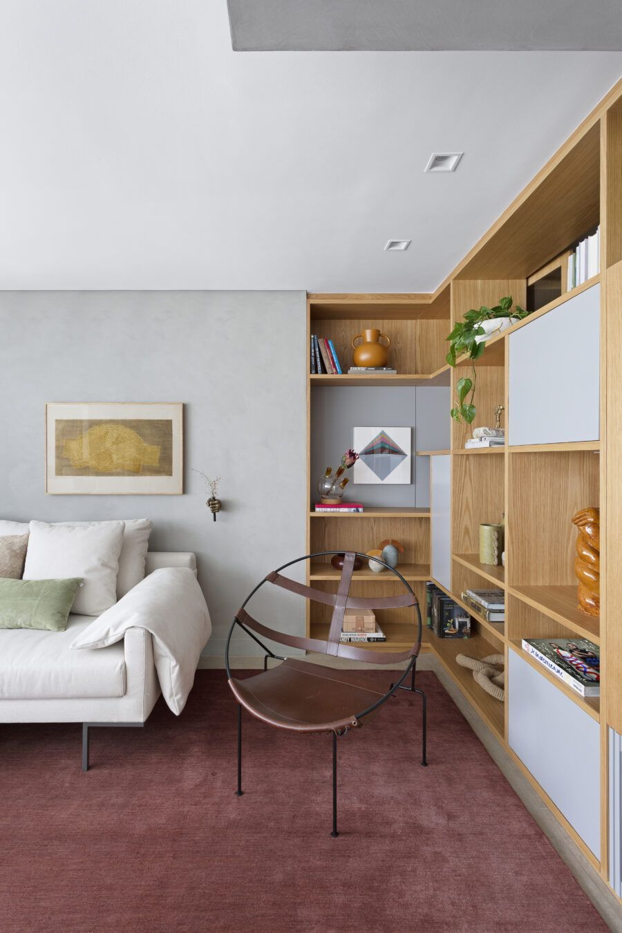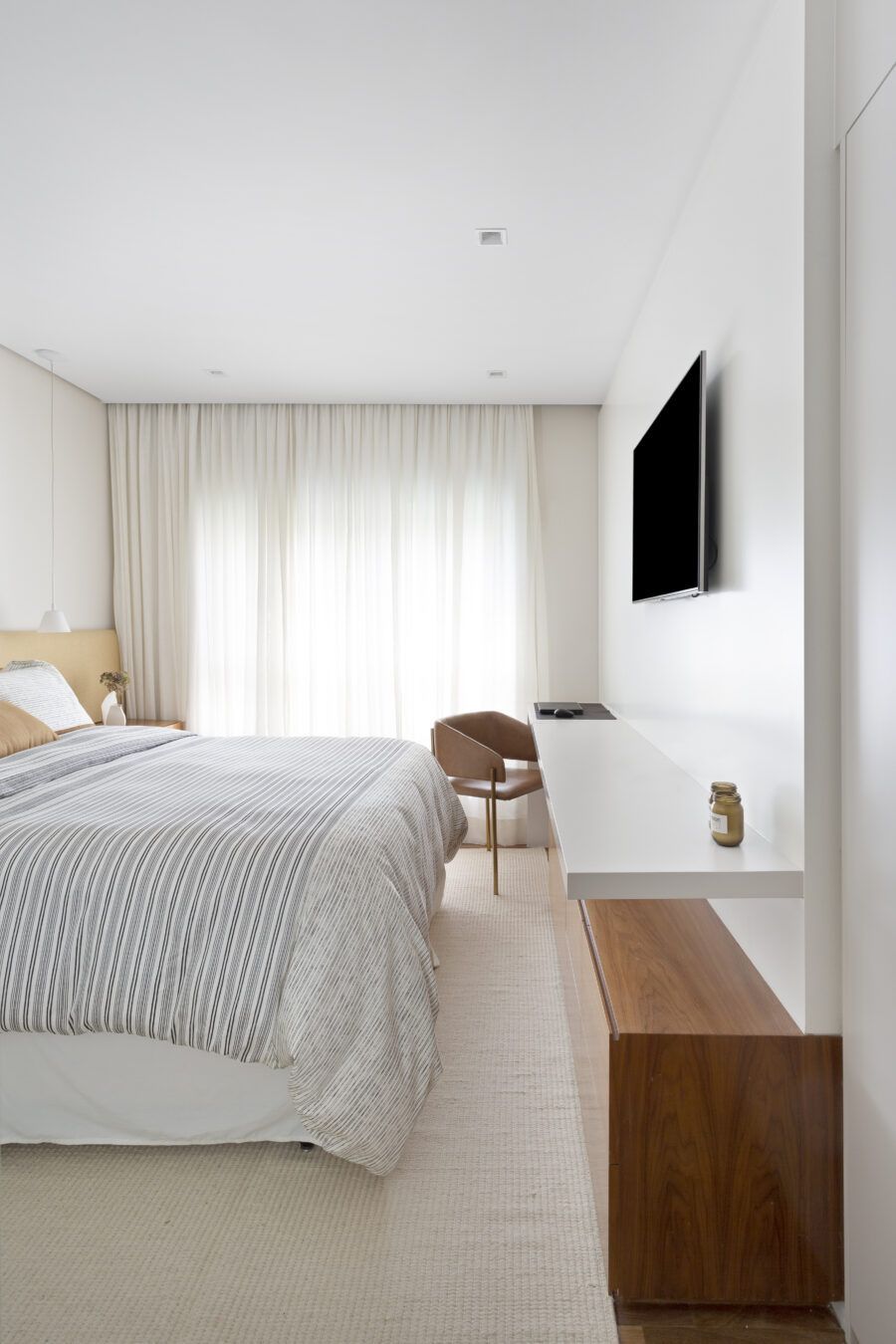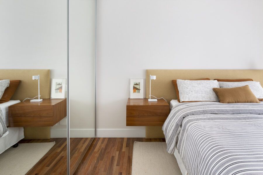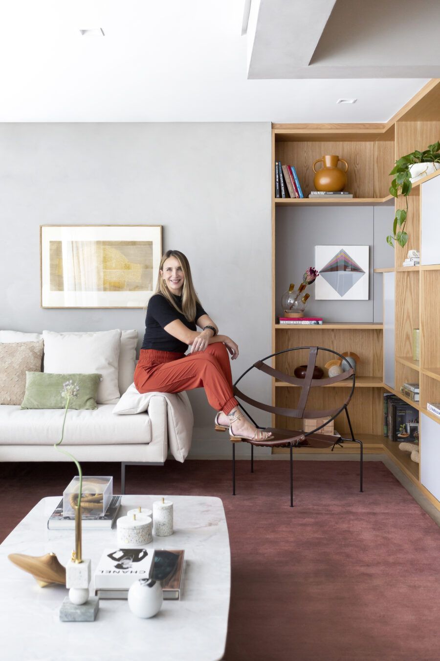 “Os clientes queriam mudar completamente a cara do apartamento. Já na nossa primeira reunião entendi que eles desejavam um apartamento moderno, clean e aconchegante. O principal pedido deles foi deixar a sala mais ampla possível também. Gostam de design e arte, e isso é super presente no apartamento, nas escolhas dos móveis, quadros e objetos de decoração.”
