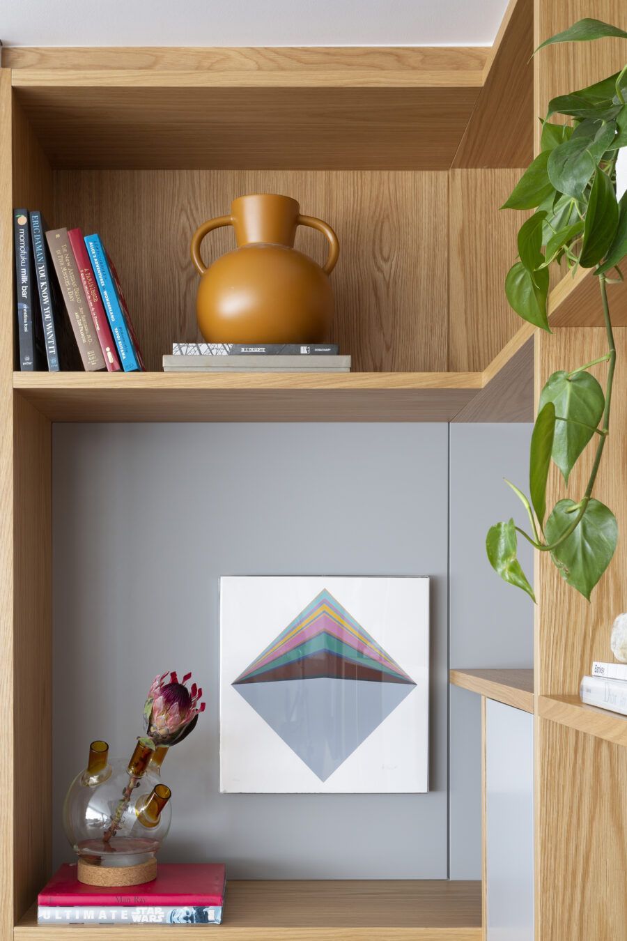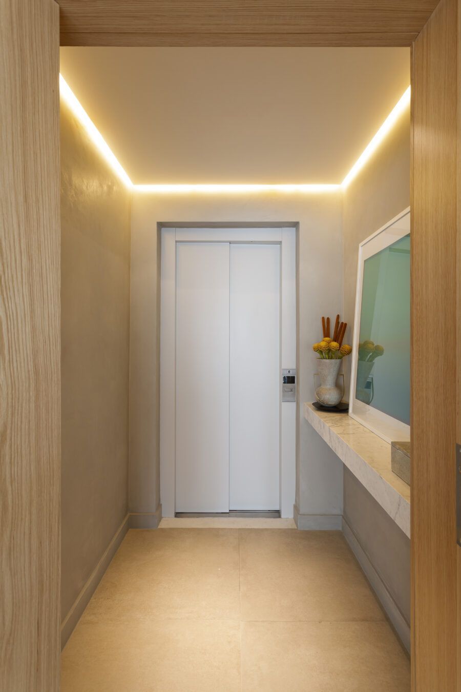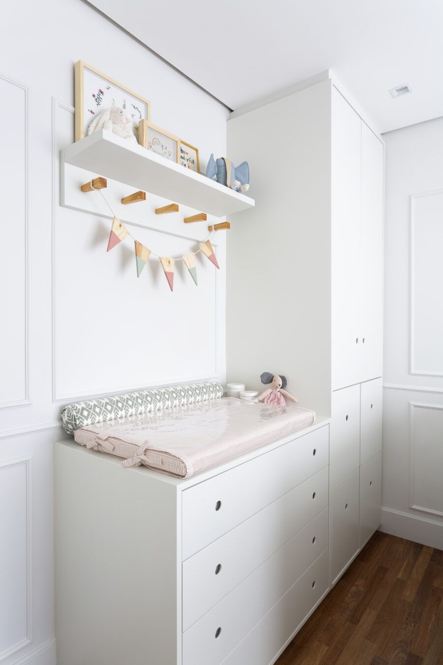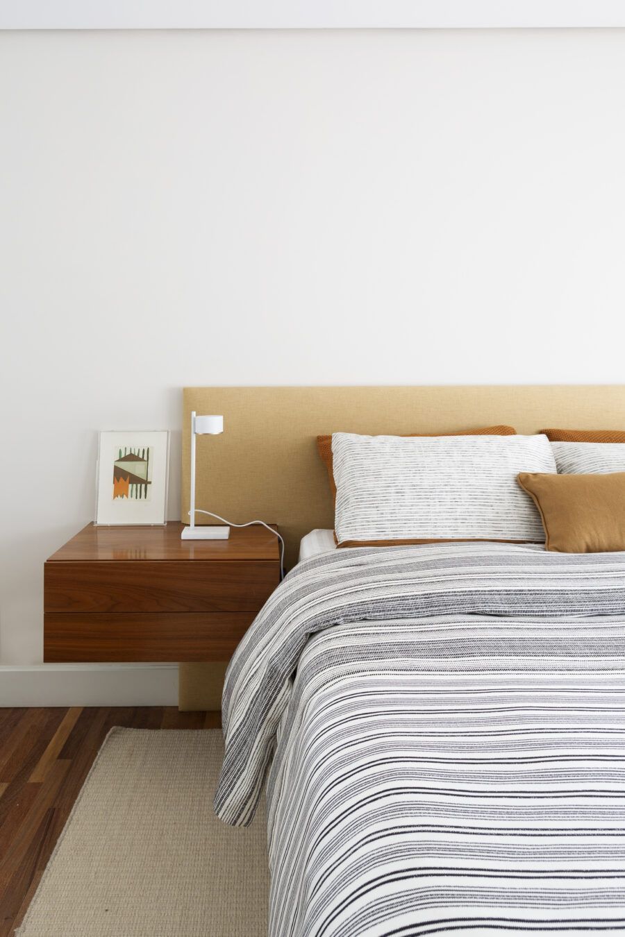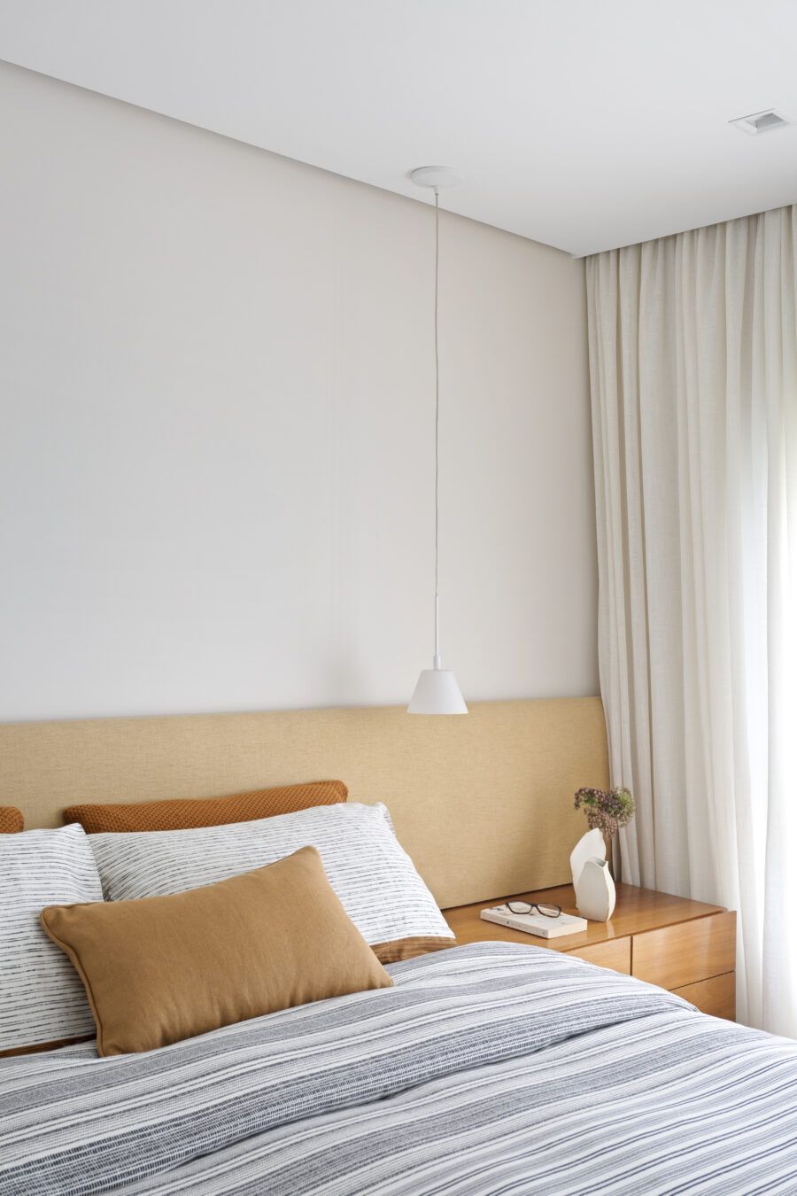 “Os clientes queriam mudar completamente a cara do apartamento. Já na nossa primeira reunião entendi que eles desejavam um apartamento moderno, clean e aconchegante. O principal pedido deles foi deixar a sala mais ampla possível também. Gostam de design e arte, e isso é super presente no apartamento, nas escolhas dos móveis, quadros e objetos de decoração.”