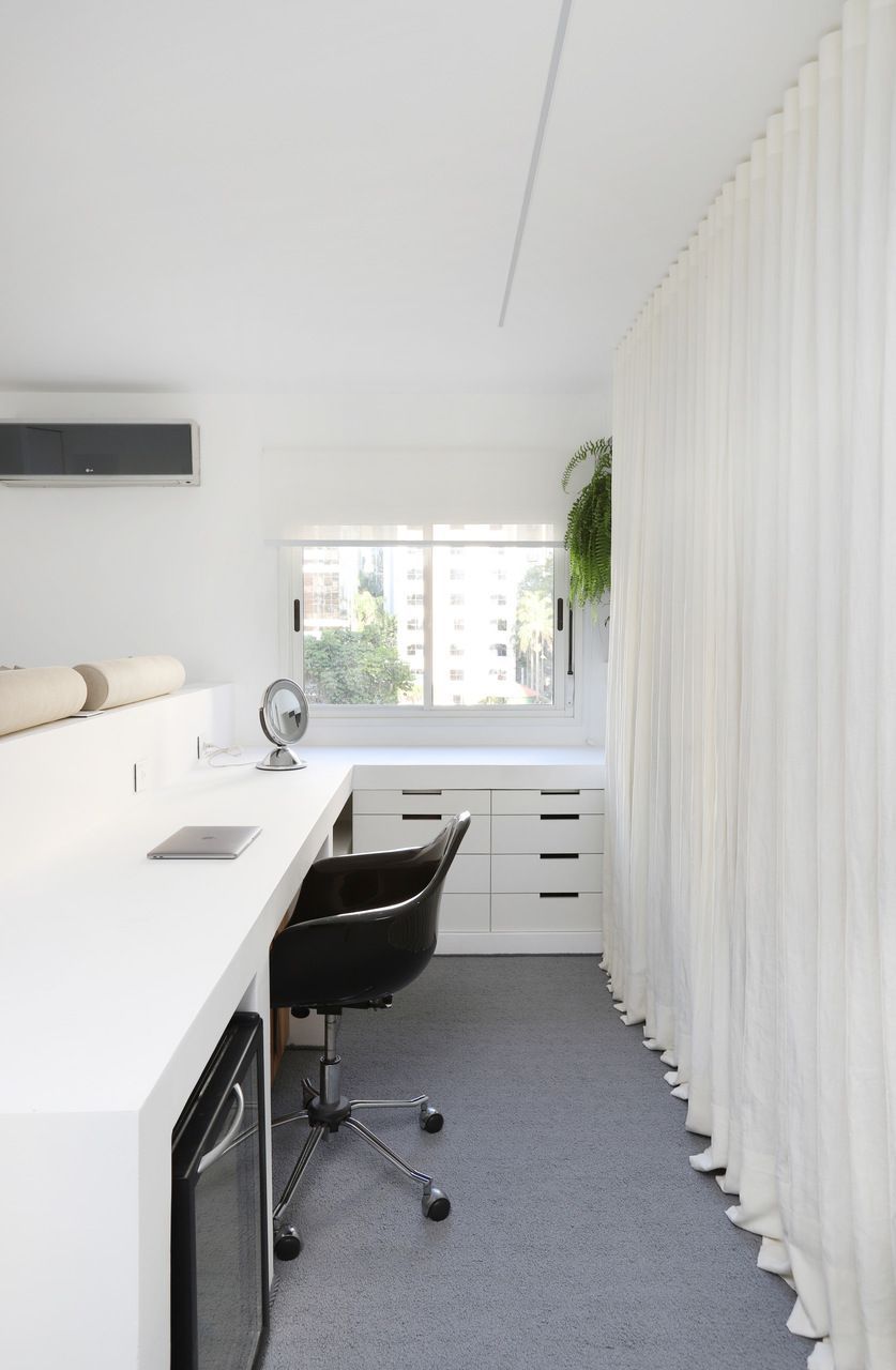 Na arquitetura o destaque vai para as alvenarias, que por ser apartamento o escritório precisou fazer estudo de distribuição de pesos para não sobrecarregar as lajes.