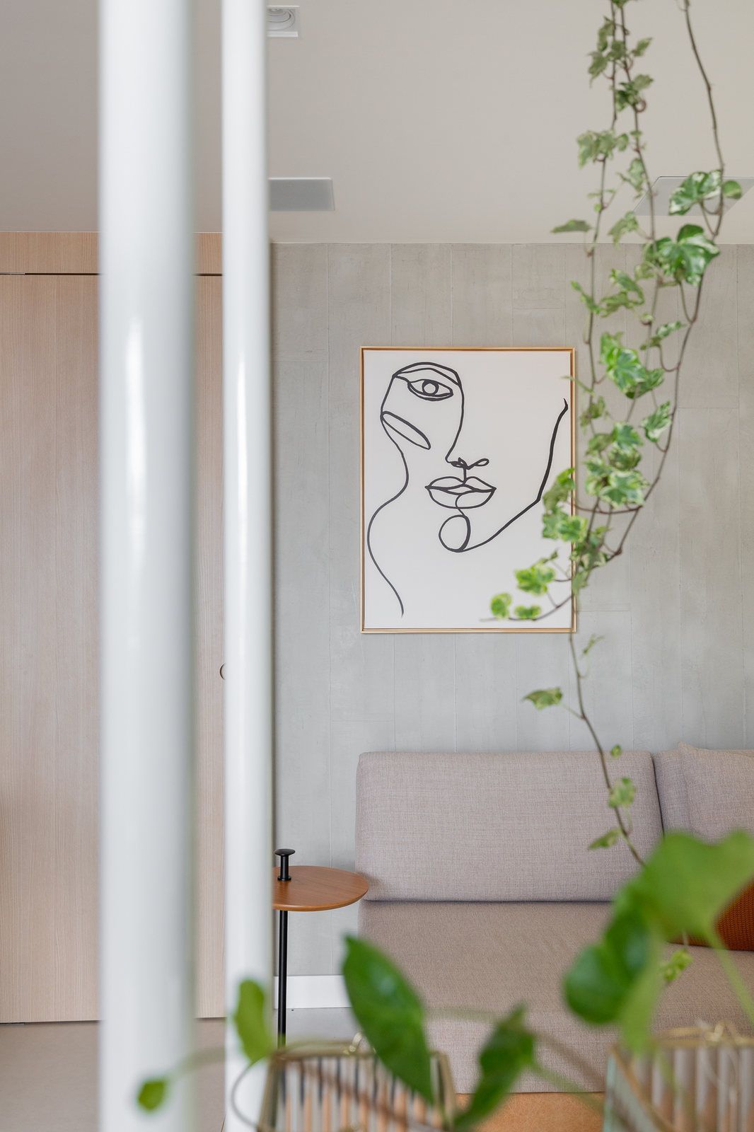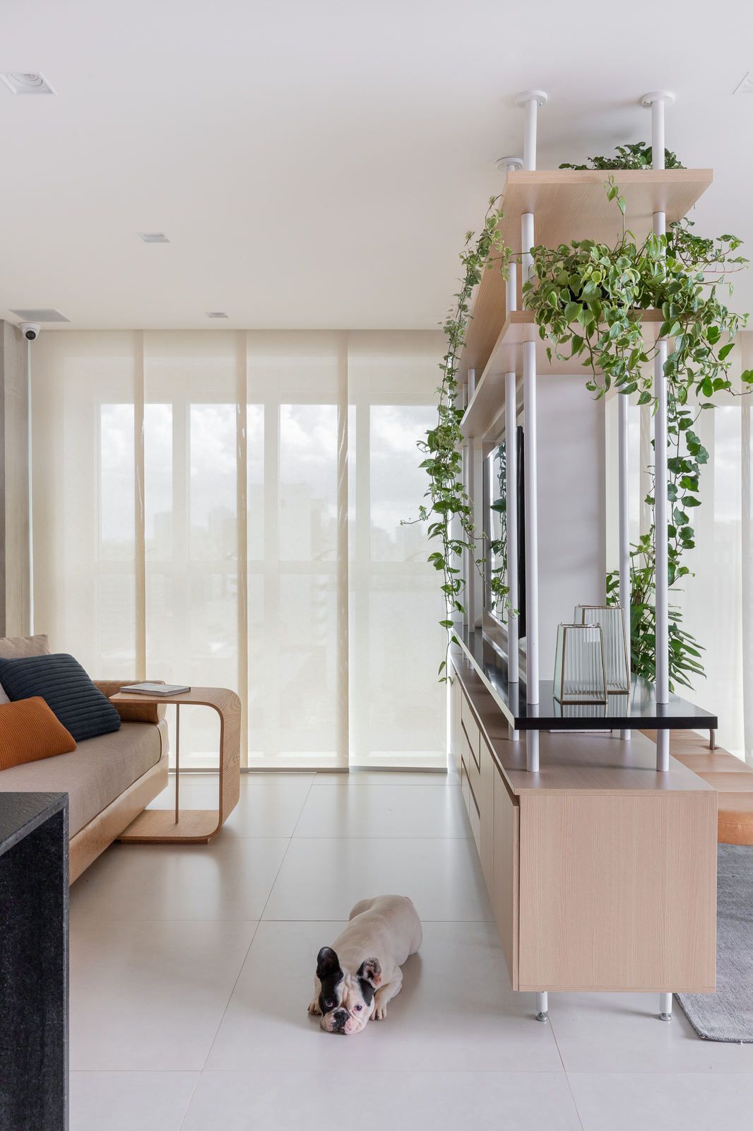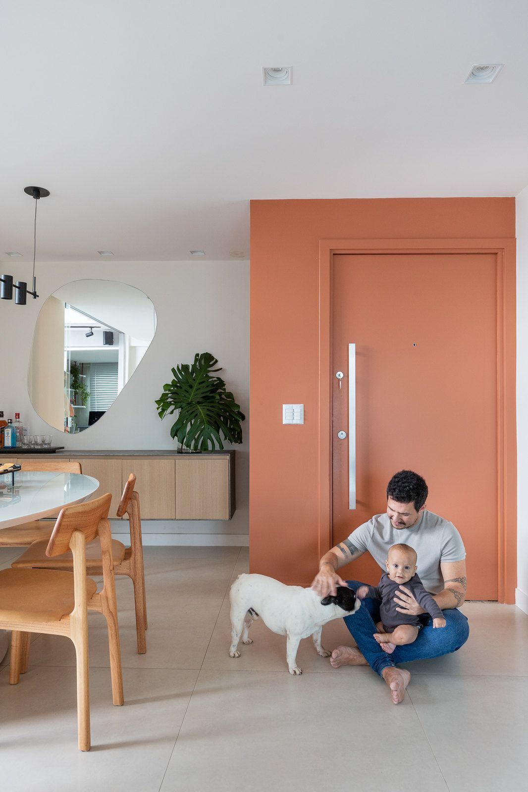 “Os clientes, jovens à espera de um bebê, gostariam de mudar o apartamento para acompanhar a nova fase e rotina da família, trazendo cor e alegria aos espaços. O apartamento foi batizado de ‘John’, o nome do integrante de quatro patas da família.”