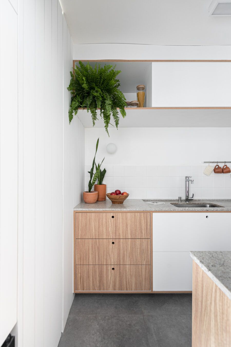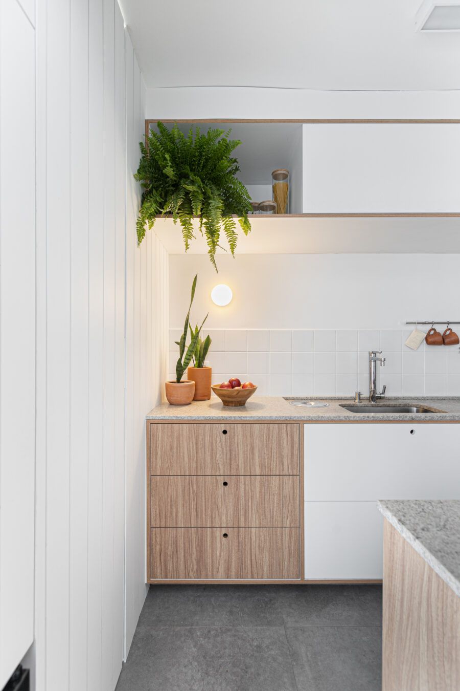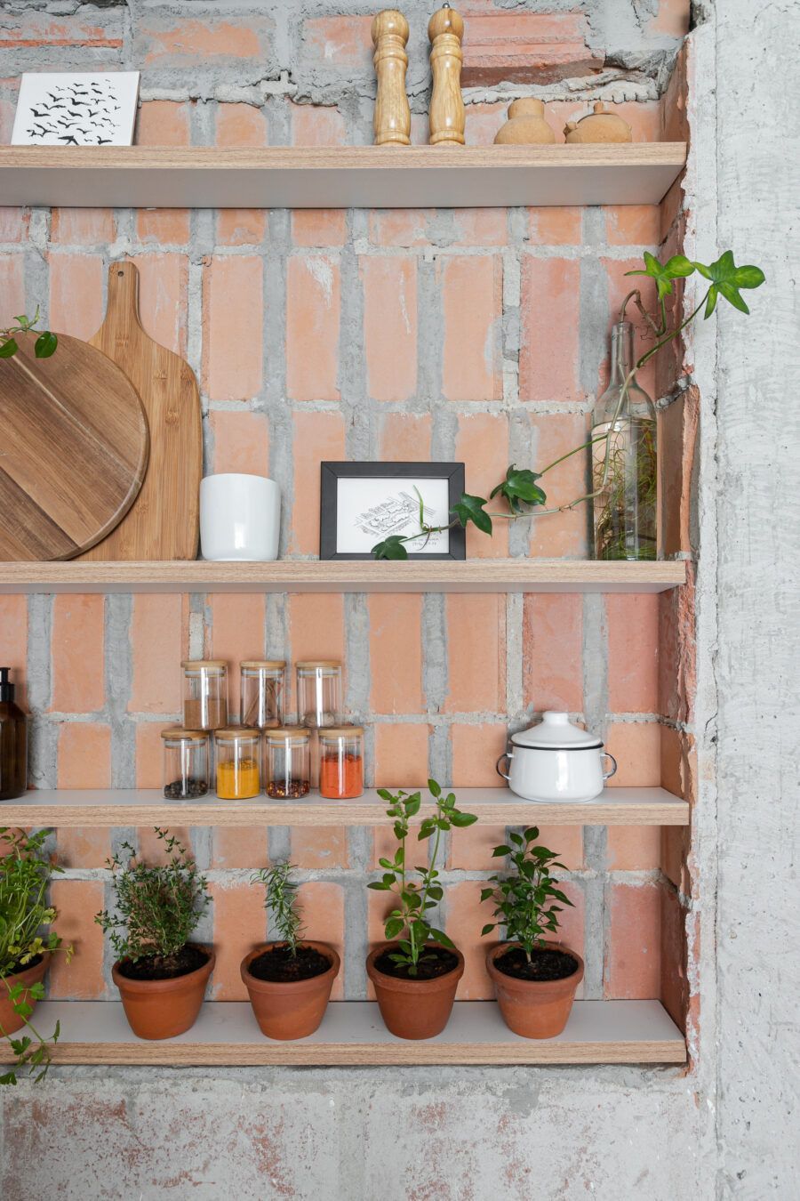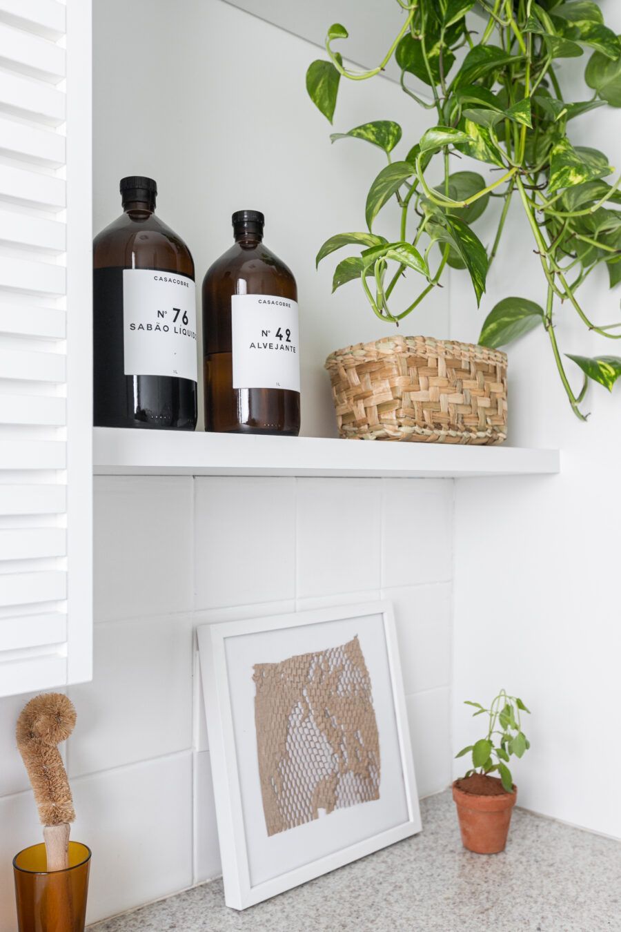 “Uma dica legal é tirar partido da estrutura existente. Nesse apartamento mantivemos uma base neutra para dar destaque e valorizar aquilo que já existia e que, na minha opinião, passa muito a sensação da casa, que é a parede de tijolo e a estrutura aparente. O nicho somado a ilha virou ponto de destaque e é a marca registrada desse apartamento.”