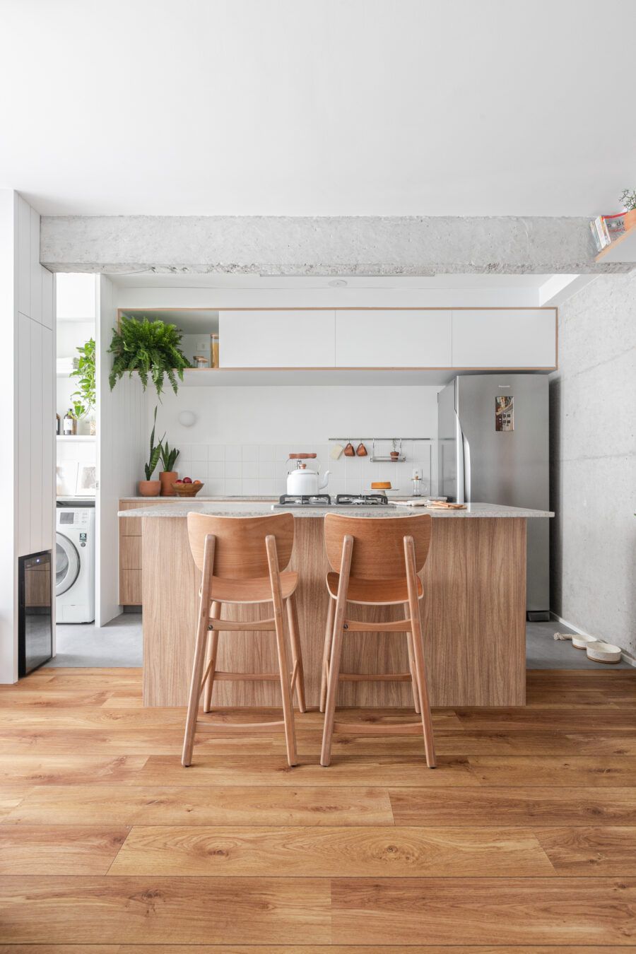 Um apartamento com cara de casa em uma metragem bem diminuta. Este foi o desafio da arquiteta Larissa Velloso ao definir o projeto de seu próprio lar com o marido no Jardins, em São Paulo.