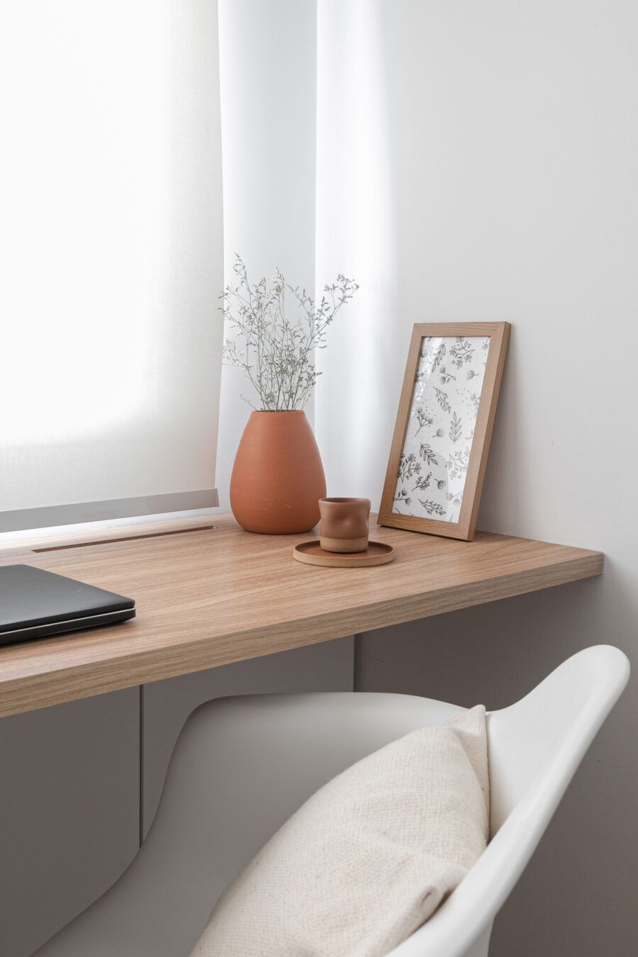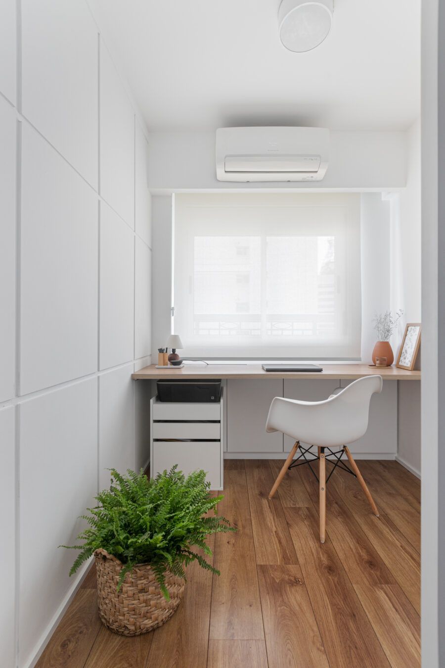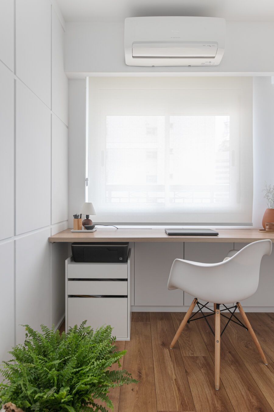 “O primeiro desafio era que eu era a arquiteta, a proprietária, a moradora e a cliente, rs. Foi muito difícil conciliar todos os desejos, sentimentos, custos e expectativas. Mas um ponto desafiador em termos de projeto foi a planta com muitos recortes, não cabia um sofá com bom tamanho sem que ficasse interrompendo a passagem. Além do fato de querer transmitir a sensação de casa para um apartamento de apenas 52 m² localizado a uma quadra da Avenida Paulista.”