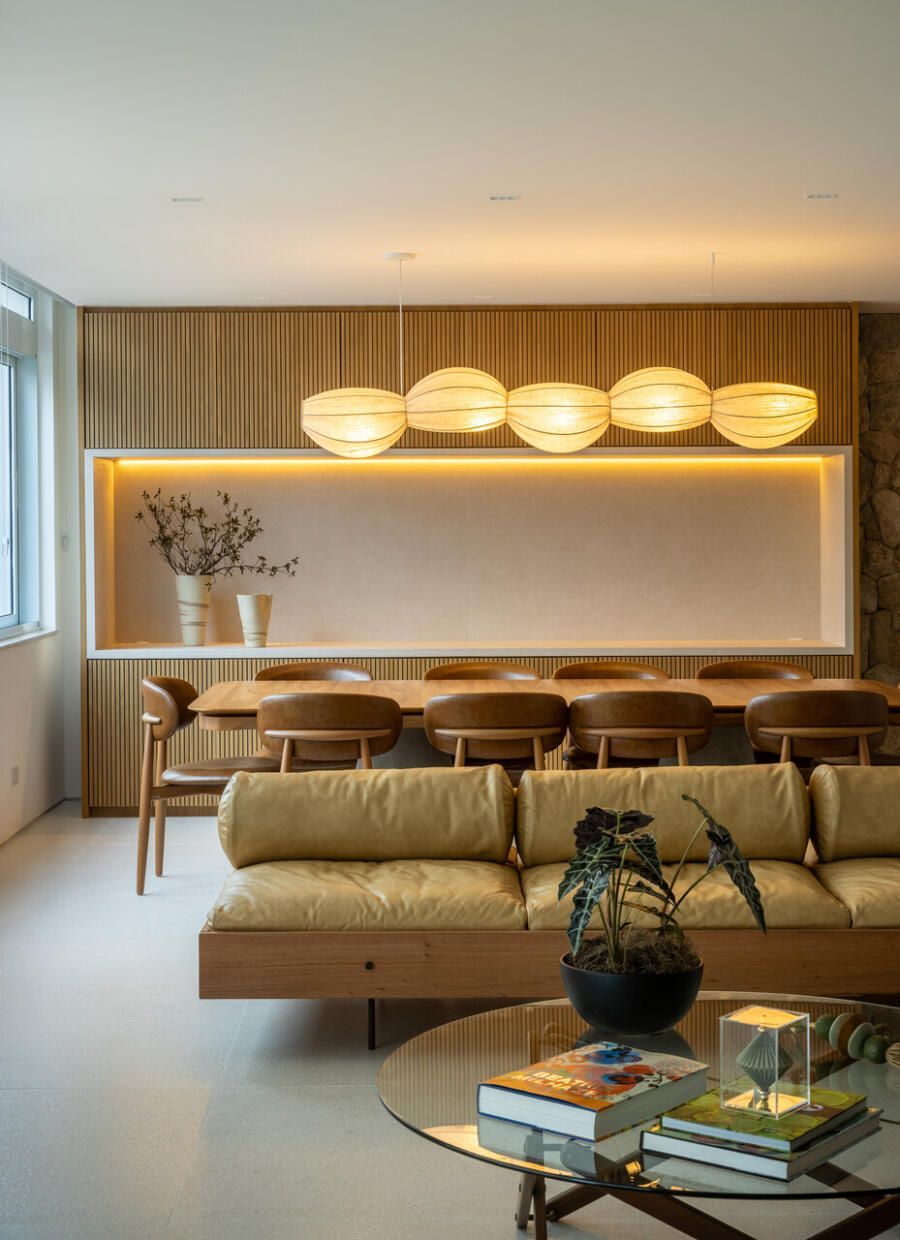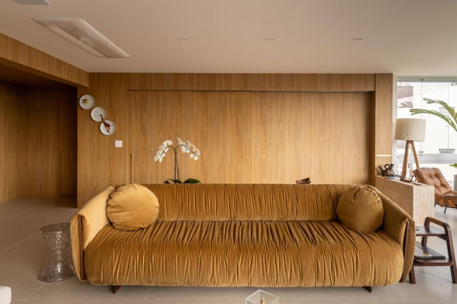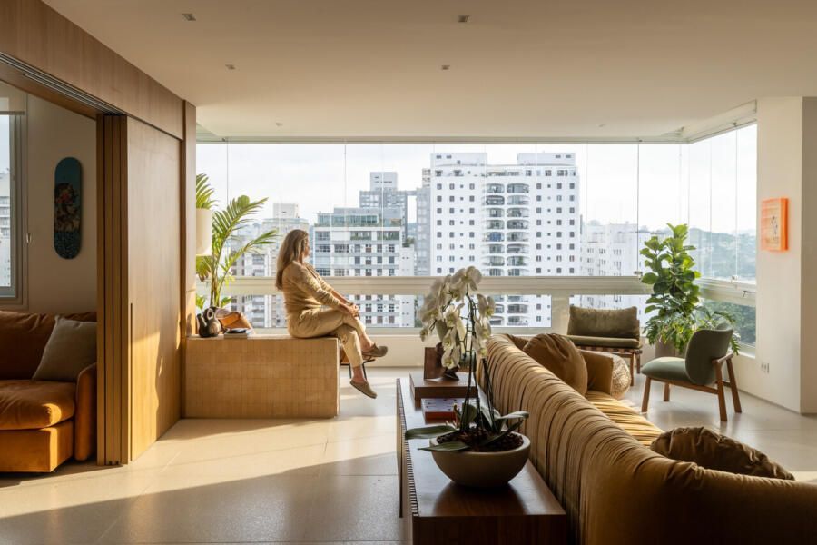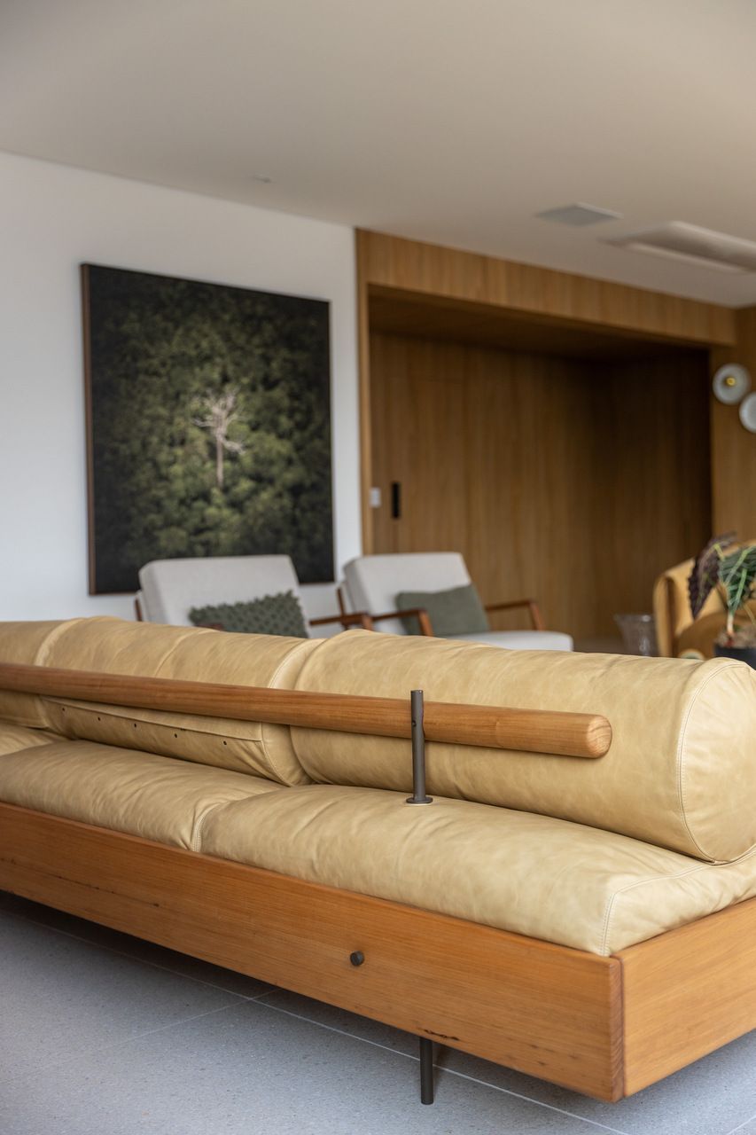 “Priorizamos o uso de materiais naturais e pedimos que a madeira estivesse presente de forma marcante, mas sem pesar no ambiente. A Nicole conseguiu traduzir todas essas demandas com precisão. Ela pensou nos espaços e funcionalidades, mas também trouxe a atmosfera que buscávamos: uma casa que nos acolhe. Hoje, vivendo aqui, sentimos essa sensação de refúgio, de paz e tranquilidade, ao mesmo tempo em que é delicioso e prático abrir o apartamento para receber.”