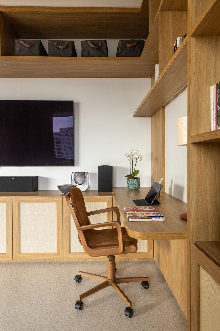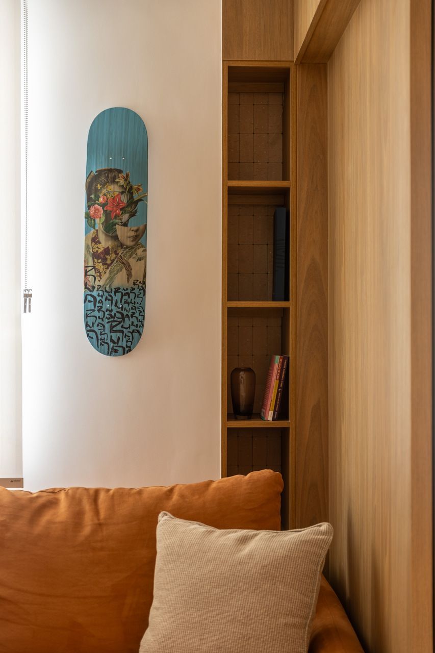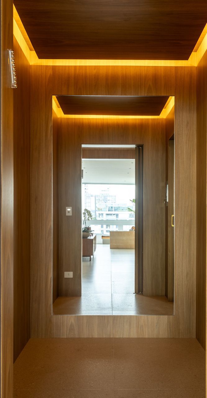 “Priorizamos o uso de materiais naturais e pedimos que a madeira estivesse presente de forma marcante, mas sem pesar no ambiente. A Nicole conseguiu traduzir todas essas demandas com precisão. Ela pensou nos espaços e funcionalidades, mas também trouxe a atmosfera que buscávamos: uma casa que nos acolhe. Hoje, vivendo aqui, sentimos essa sensação de refúgio, de paz e tranquilidade, ao mesmo tempo em que é delicioso e prático abrir o apartamento para receber.”