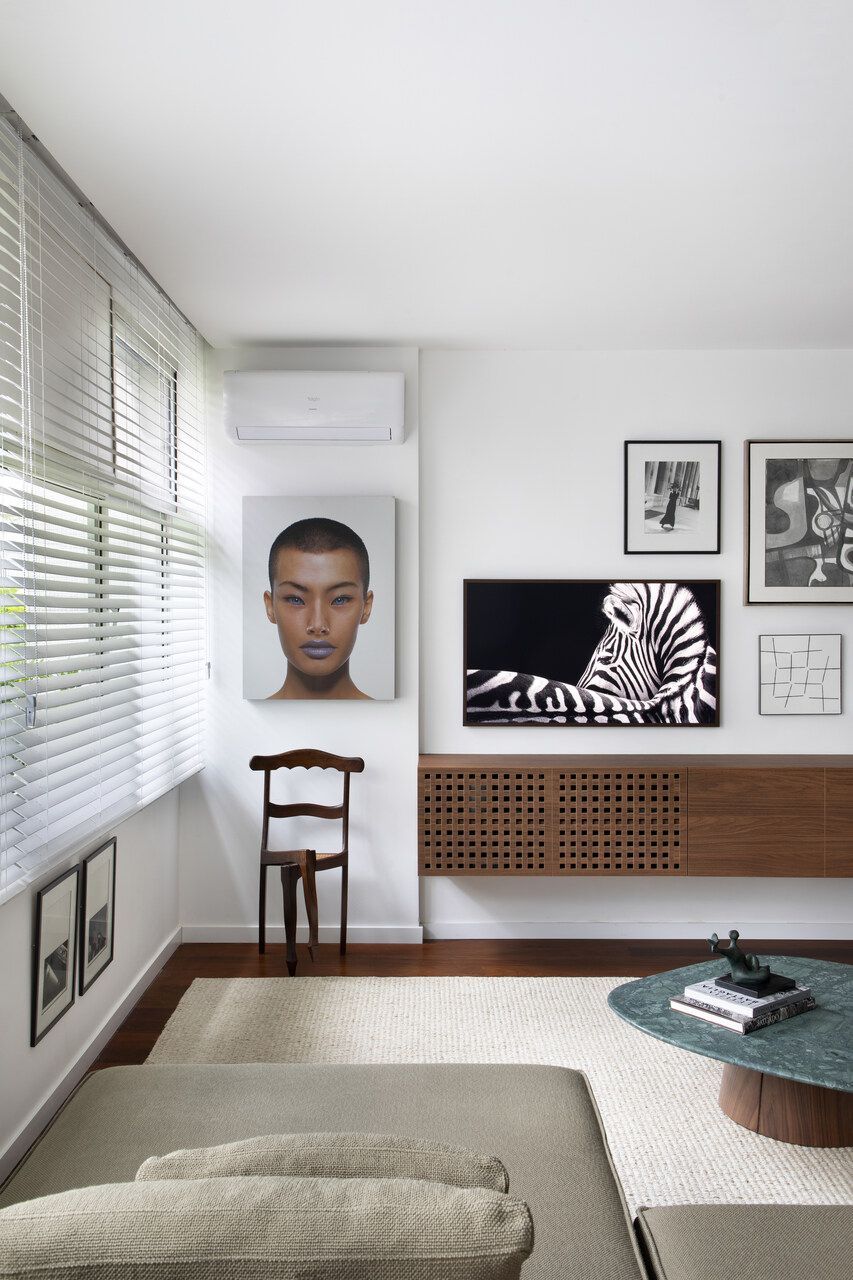 Clique aqui e veja uma sala de estar com ares de galeria de arte.