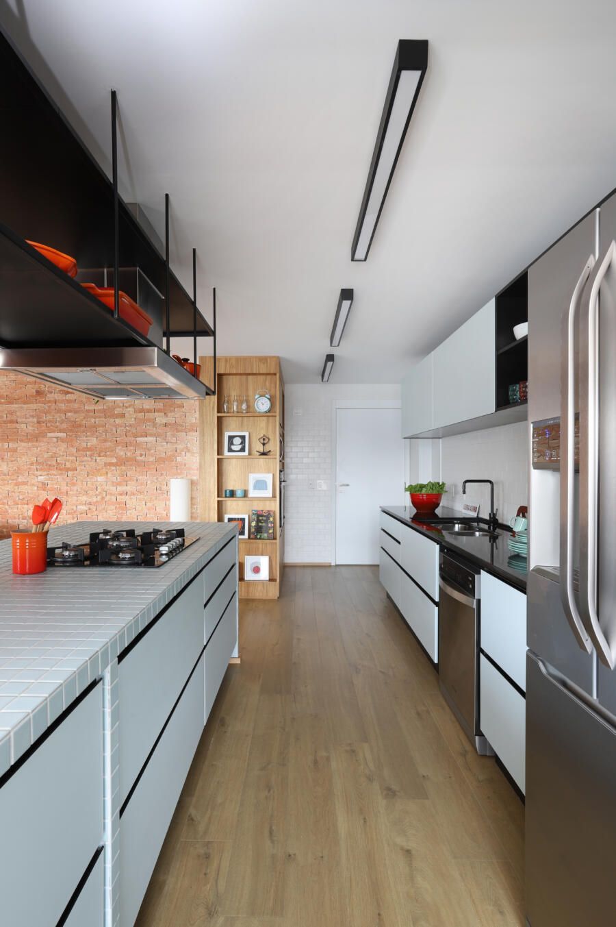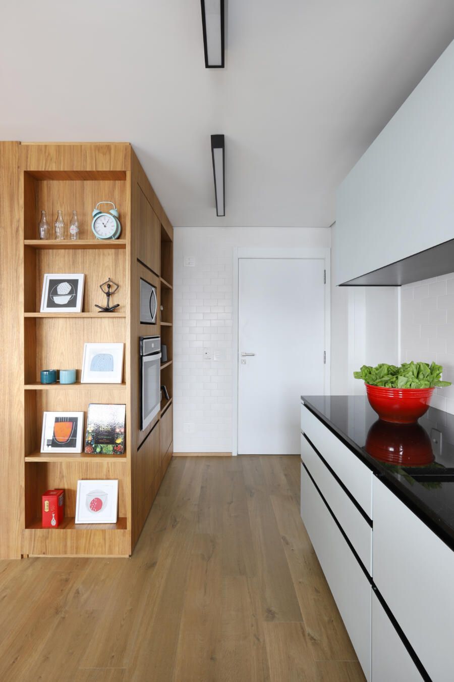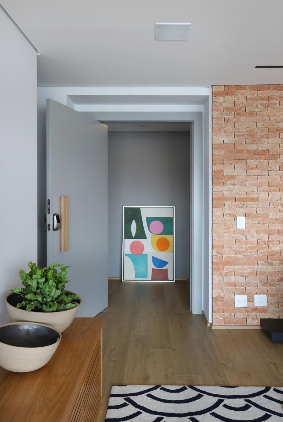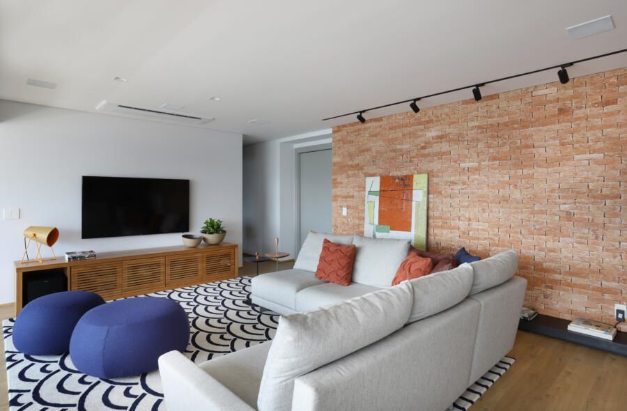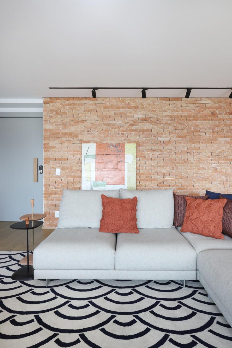 “Teve um fato curioso nesse projeto, pois apesar do cliente gostar de cor, no início eles imaginavam o projeto mais cinza, industrial. Após uma viagem que fiz para Milão, voltei e propus que usássemos um pouco mais de cor e eles concordaram. Aí fiz uma nova proposta e nunca mais mudamos nada. É de fato o que estamos vendo hoje, como o apê realmente ficou!”
