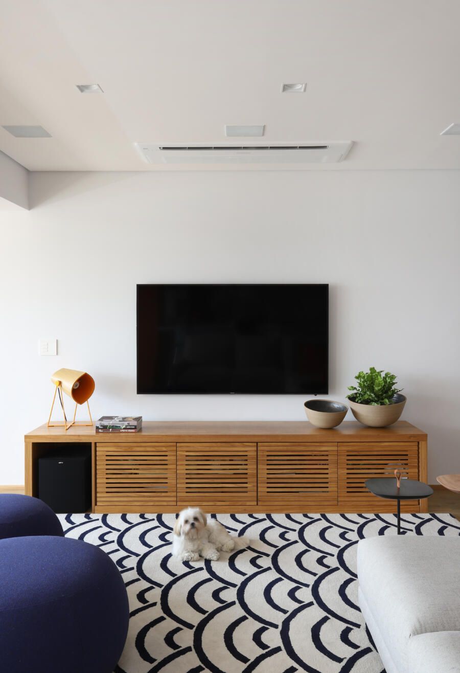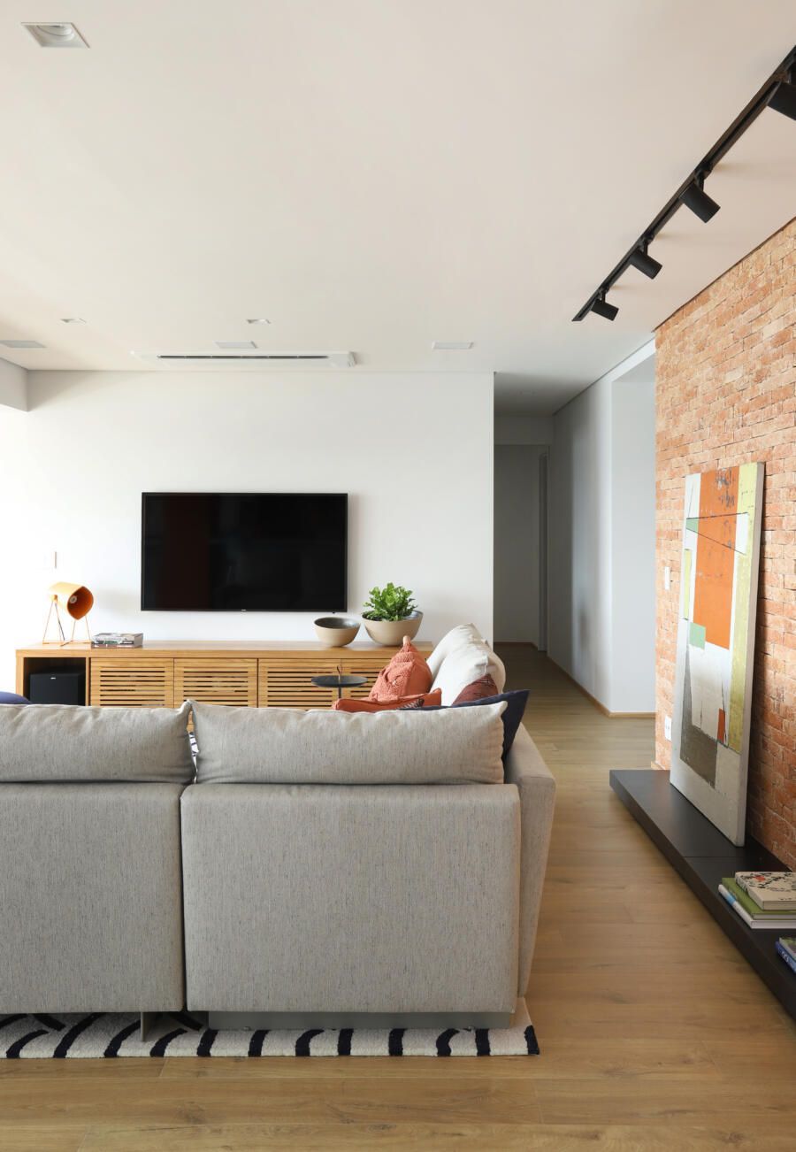Por ser um apartamento, não era possível realizar tantas mudanças arquitetônicas, então a arquiteta teve que usar a criatividade para repensar os espaços.