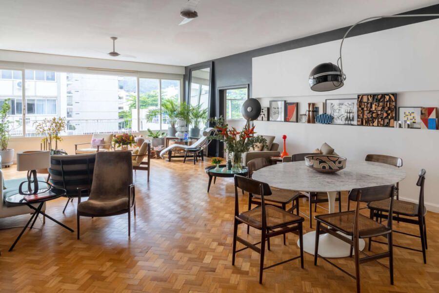 Um apartamento em constante evolução que mistura móveis brasileiros com design internacional. Esses são os principais pontos que marcam este projeto de design de interiores pensado pelo arquiteto francês Jean de Just para seu apartamento próprio em Ipanema, Rio de Janeiro.