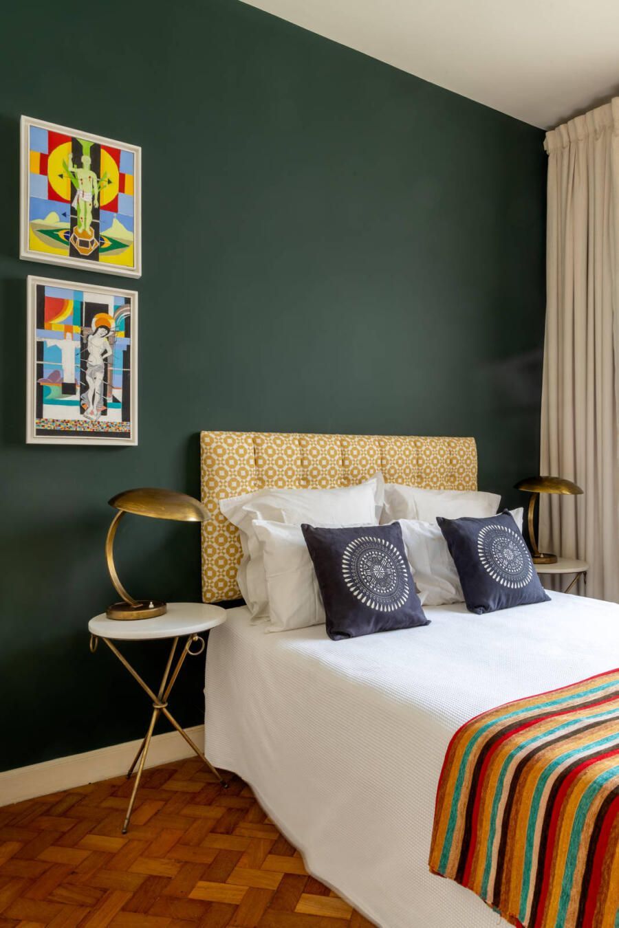 “Gosto de criar interiores que tenham a ver com a cidade onde o aqueles espaços se inserem, então pensei em um apartamento que tivesse um estilo bem brasileiro. Não queria uma atmosfera de showroom, mas sim uma casa personalizada, única e com alma. Vale pontuar que eu tenho uma paixão pela arte indígena brasileira, então há vários objetos pelo apartamento, como bancos, esculturas, pratos e cerâmicas. Eu busco me inspirar nas coisas que estão à minha volta, por isso não faria sentido criar um apartamento 100% francês!”