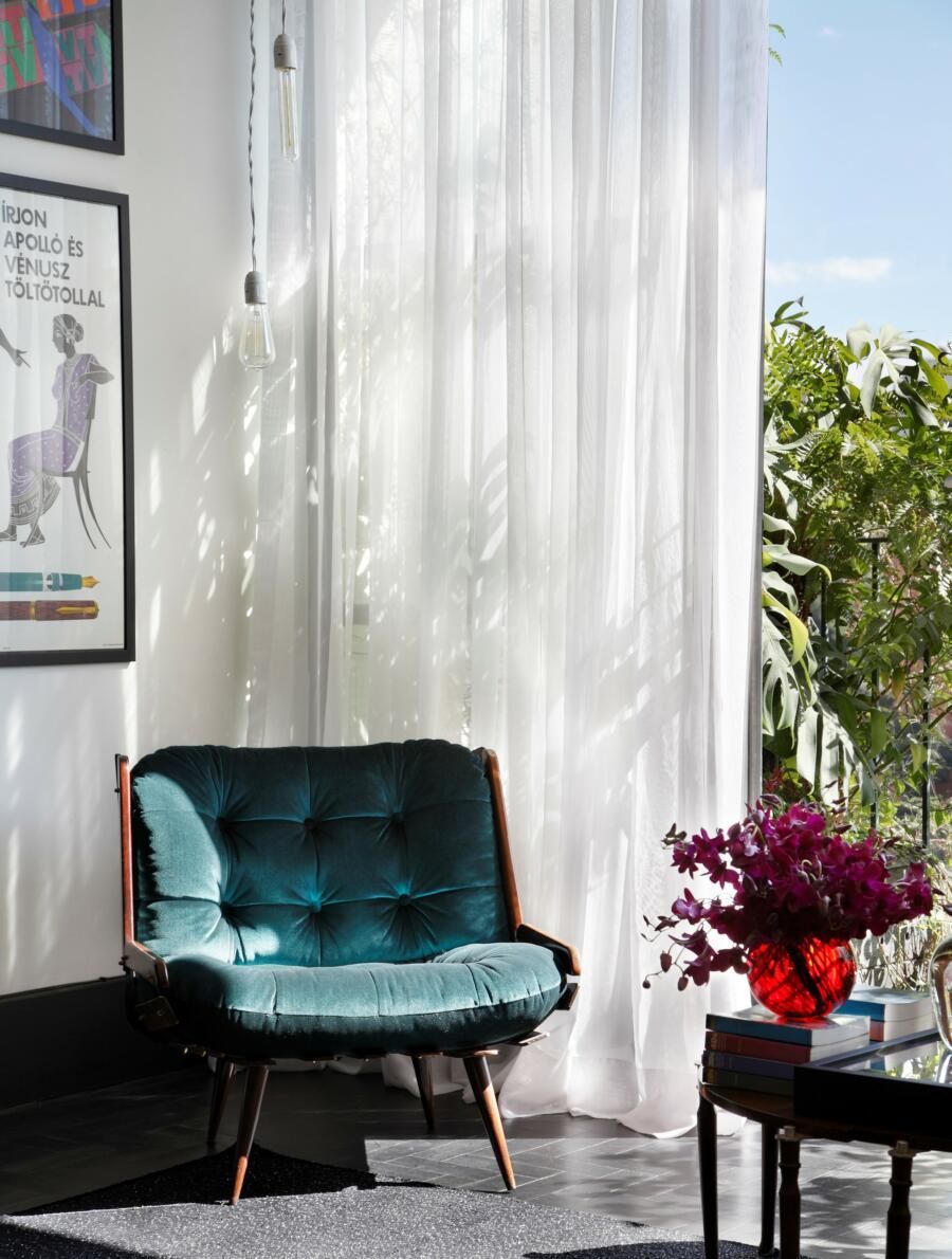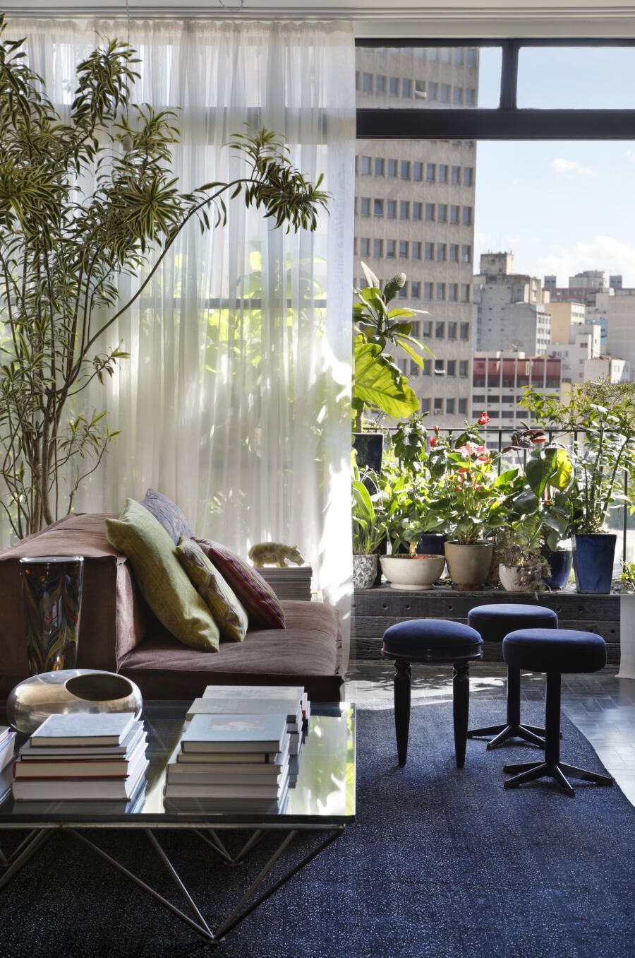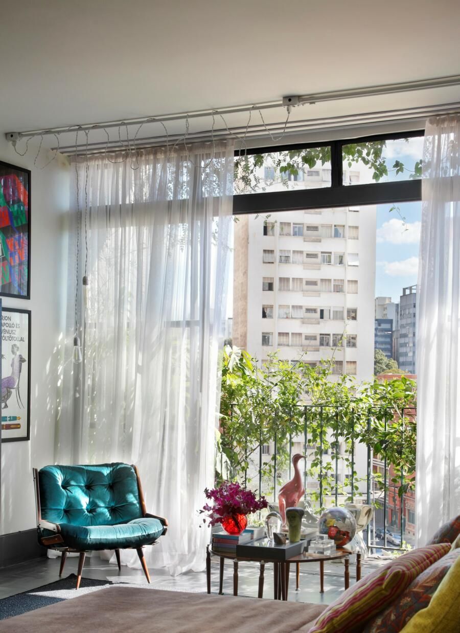 “A cortina de 3 camadas de linho filtra a entrada do sol, mas sem que a luminosidade seja totalmente perdida.”
