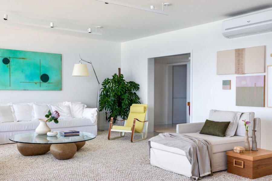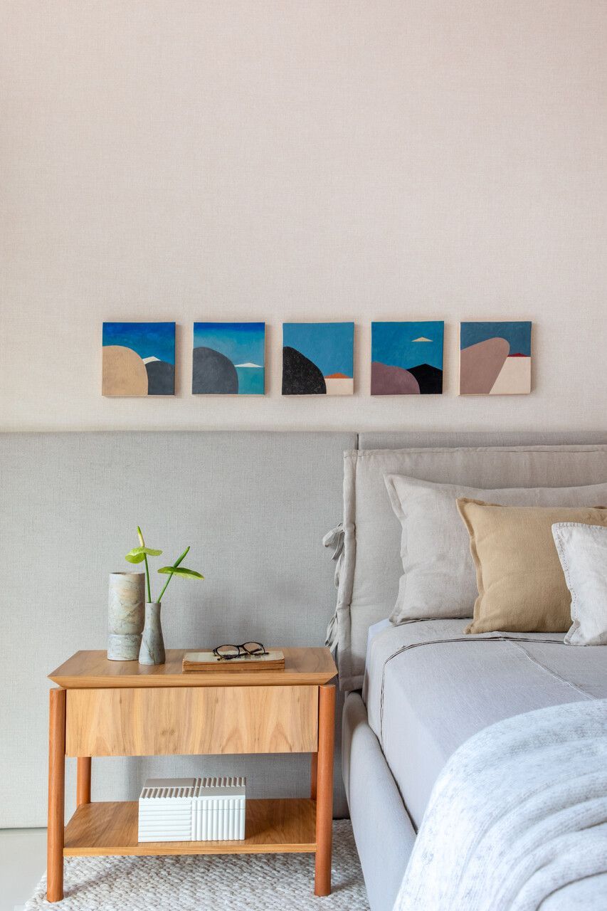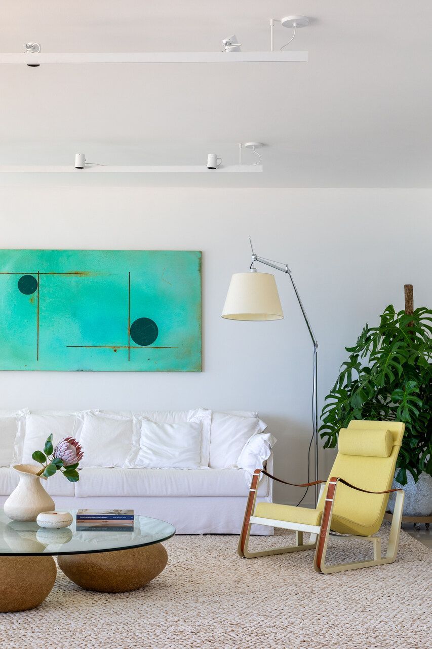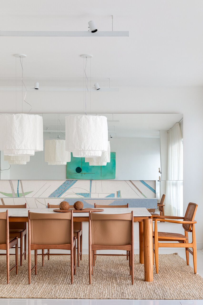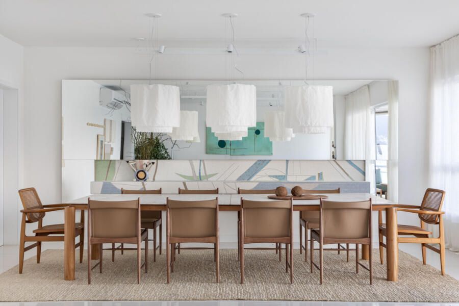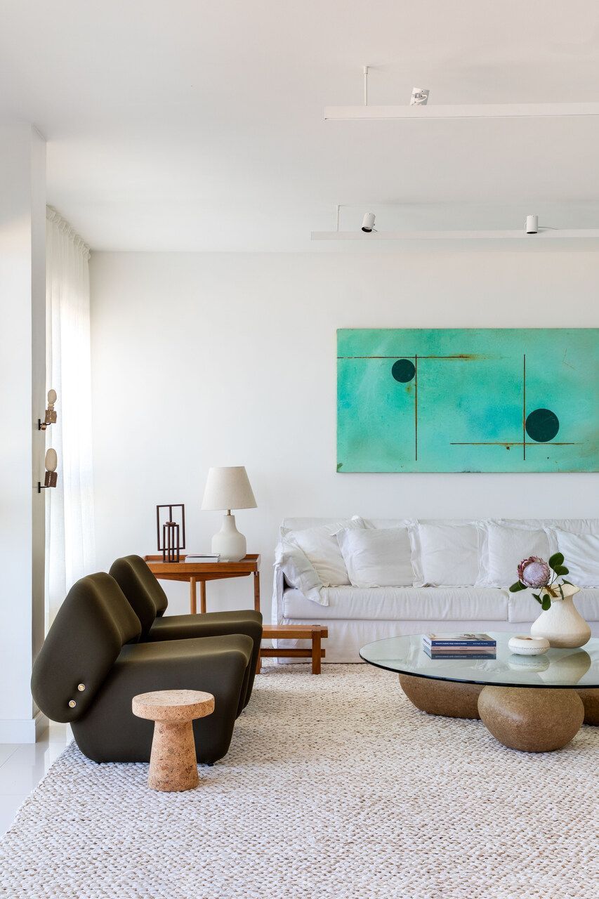 O briefing do projeto pedia um ambiente clean e atemporal, com texturas que garantissem aconchego, sem competir com a vista para o mar ou com a coleção de obras de arte. Além disso, era essencial incluir mobiliário brasileiro de design assinado.