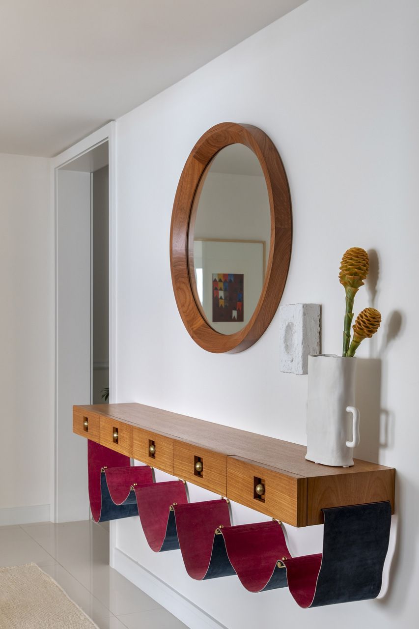 Como o apartamento é alugado, não houve alterações na planta original. O resultado foi uma atmosfera elegante e despretensiosa, alinhada ao estilo das residências de alto padrão da Zona Sul carioca.